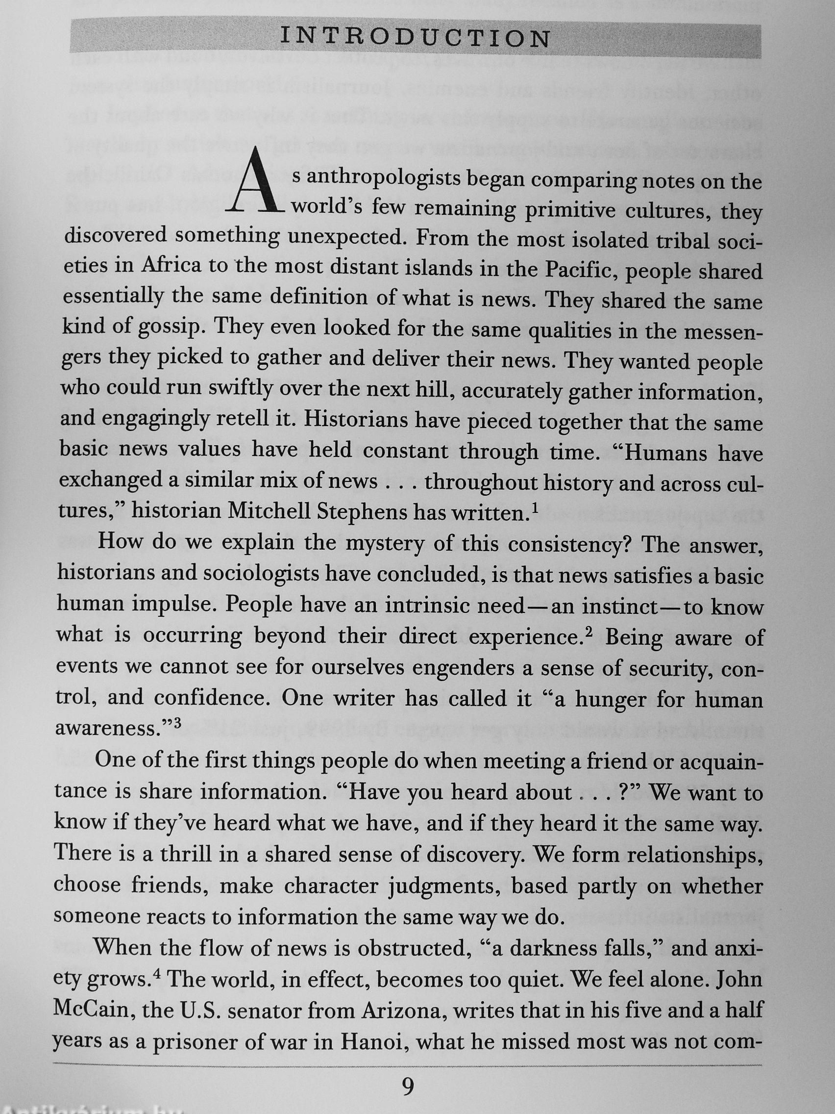 "Of the many books that have been written about reporting the news, this one best captures the shortcomings, subtleties, and possibilities of modern journalism. It de.serves to bcconie as indispensable to journalists and journalism students as The Elements of Style."