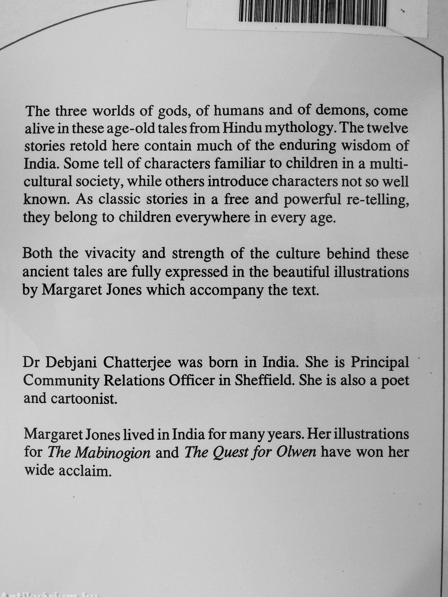 The three worlds of gods, of humans and of demons, come alive in these age-old tales from Hindu mythology. The twelve stories retold here contain much of the enduring wisdom of India, Some tell of characters familiar to children in a multicultural society, while others introduce characters not so well known. As classic stories in a free and powerful re-telling, they belong to children everywhere in every age.