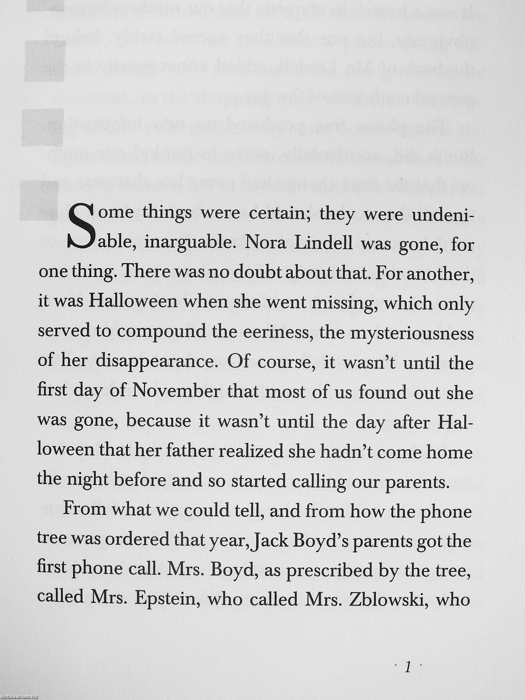 Sixteen-year-old Nora Lindell is missing. And the neighborhood boys she's left behind are caught forever in the heady current of her absence.