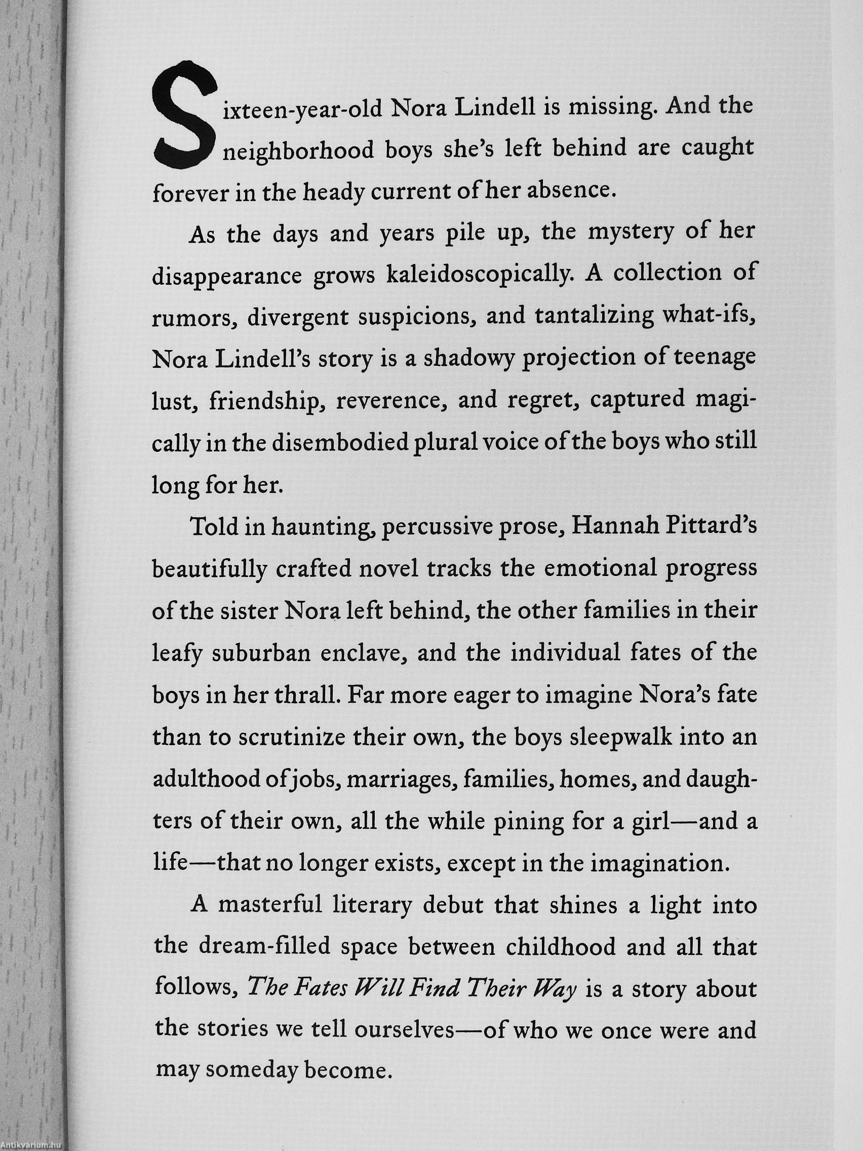 A masterful literary debut that shines a light into the dream-filled space between childhood and all that follows. The Fates Will Find Their Way is a story about the stories we tell ourselves—of who we once were and may someday become. Vissza
