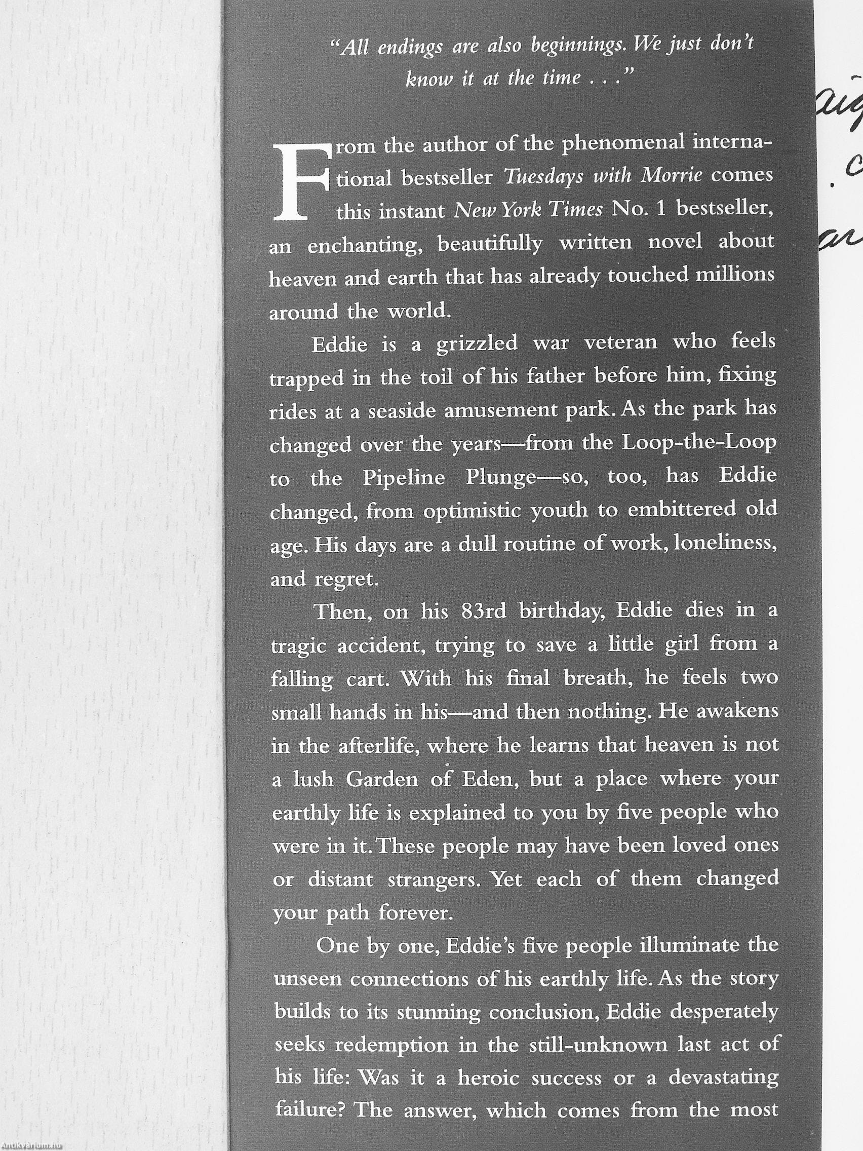From the author of the phenomenal international bestseller Tuesdays with Morrie comes this instant New York Times No. 1 bestseller, an enchanting, beautifully written novel about heaven and earth that has already touched miUions around the world.