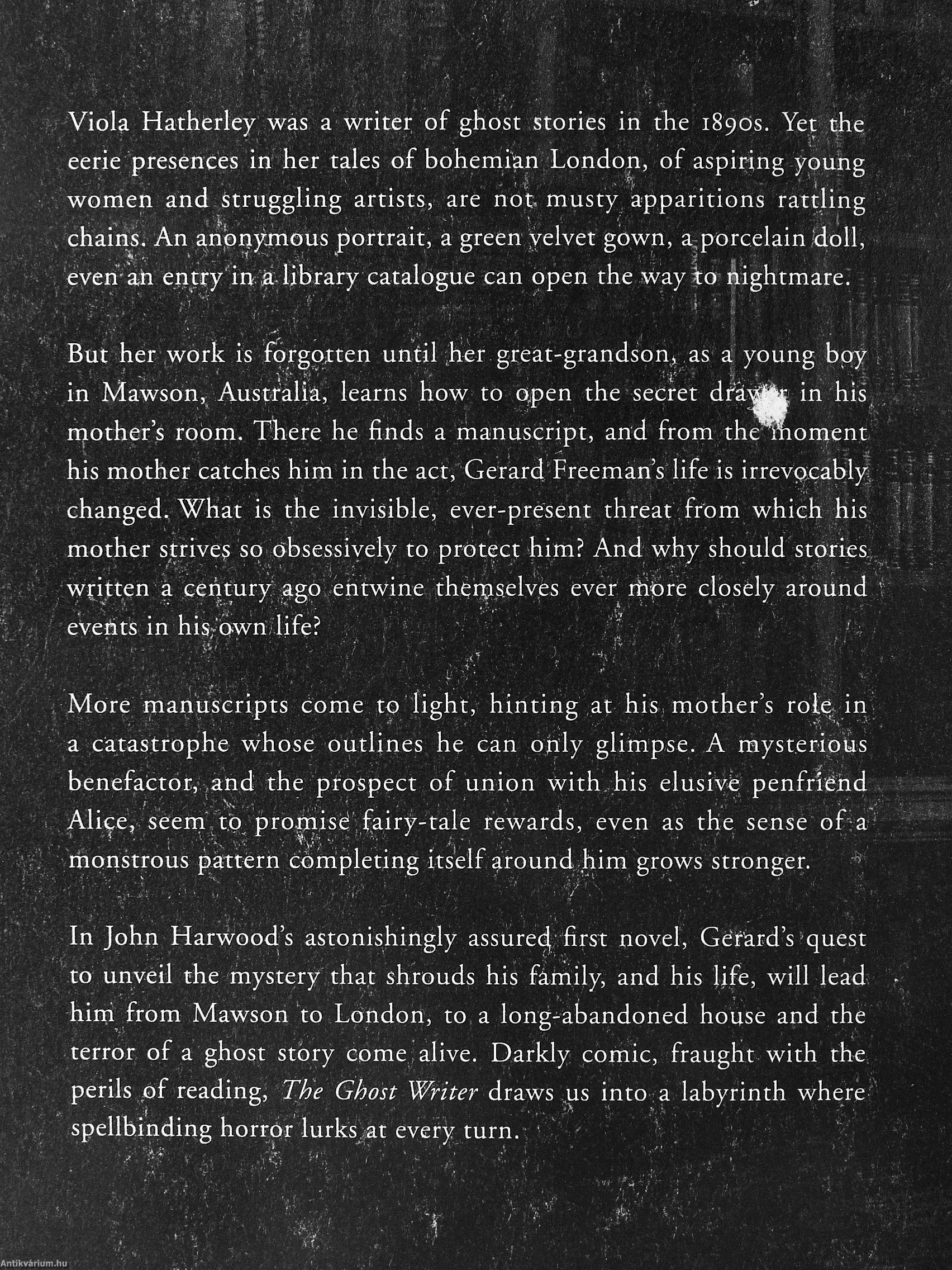 In John Harwood's astonishingly assure^ first novel, Gerard's quest to unveil the mystery that shrouds his family, and his life, will lead hini from Mawson to London, to a long-abandoned house and the terror of a ghost story come alive. Darkly comic, fraught with the perils of reading. The Ghost Writer draws ,us into a labyrinth where spellbinding horrbr lurks ;at every turn.