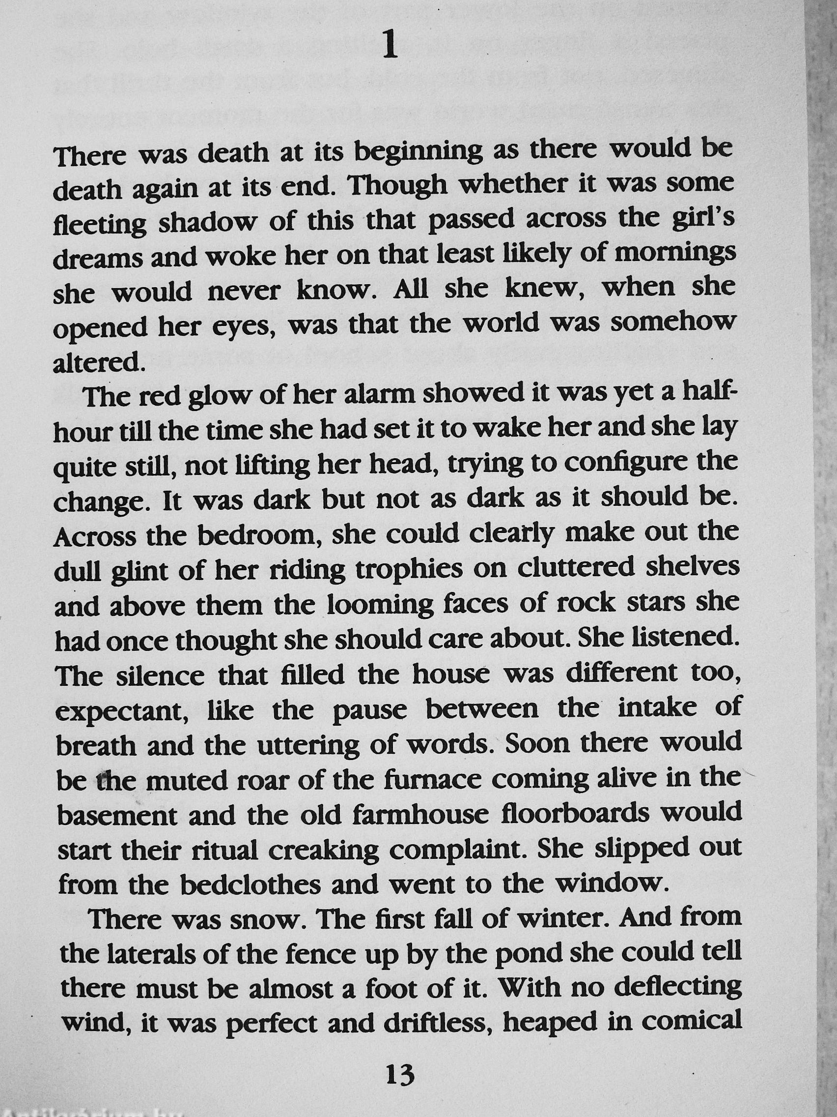 In the still of a snow-covered morning in upstate New York, a girl out riding her horse is hit by a 40-ton truck. Though horribly injured, both thirteen-year-old Grace Maclean and her horse Pilgrim survive. But the impact on their lives and the lives of those who love them is devastating.