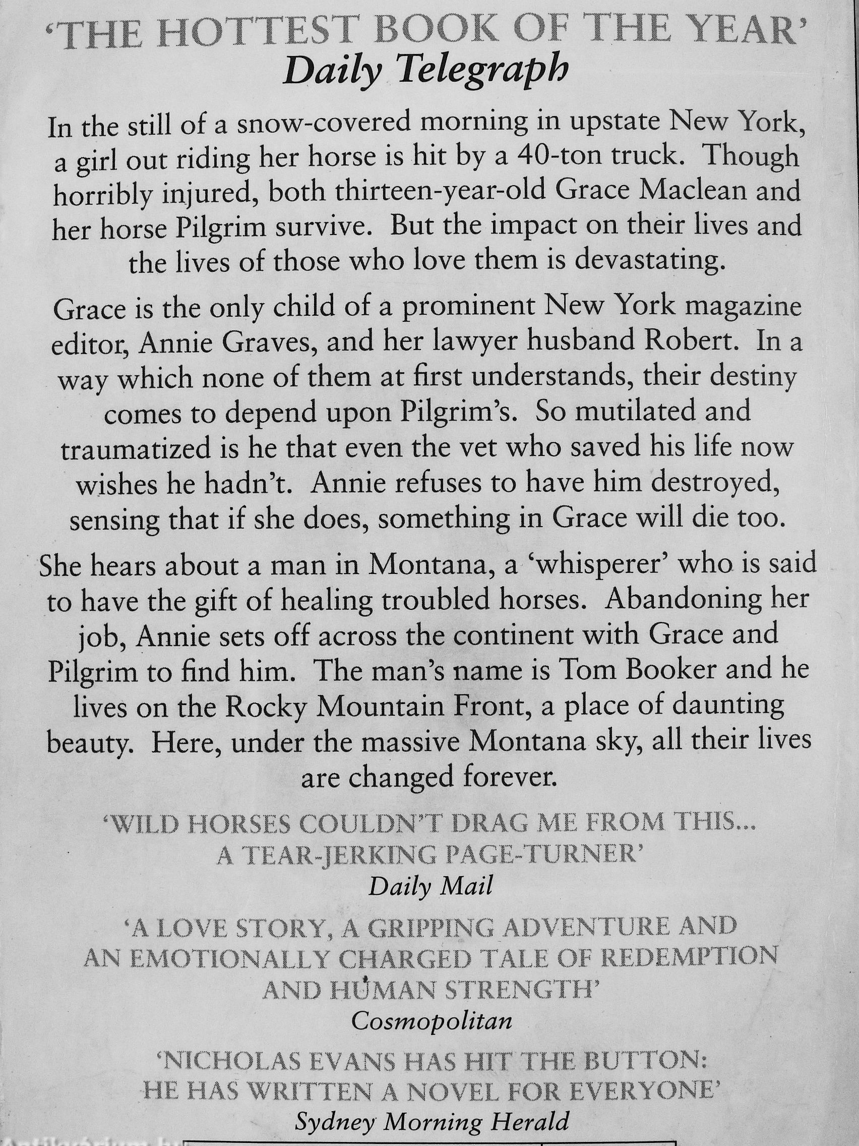 'NICHOLAS EVANS HAS HIT THE BUTTON: HE HAS WRITTEN A NOVEL FOR EVERYONE' Sydney Morning Herald