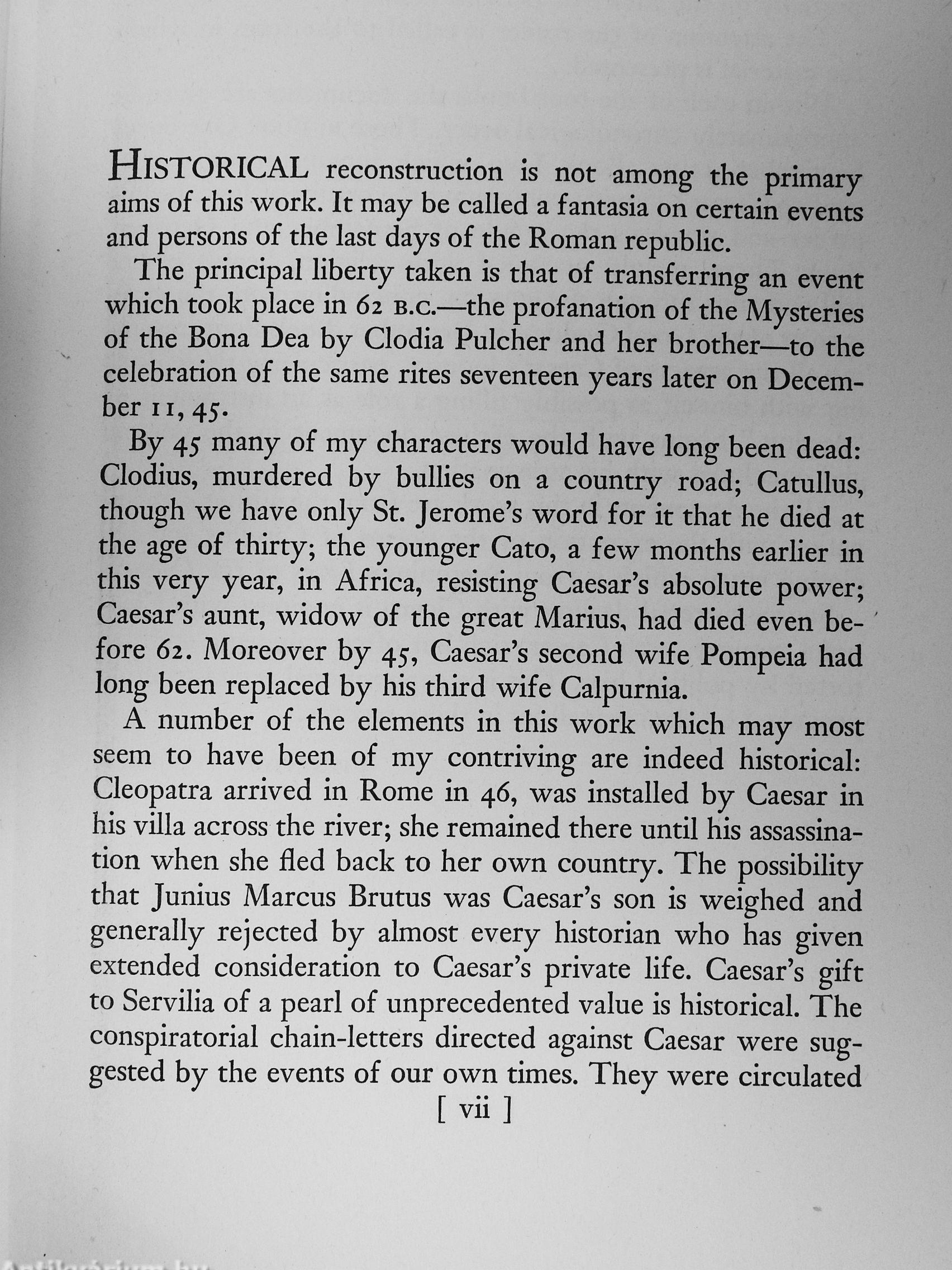 Through imaginary letters and documents, wliich are cunningly revealing and follow a narrative pattern, all Rome comes crowding through these pages. Romans of the slums, Romans of the palaces, Romans in the Alban villas, brawling youth in their athletic clubs, noble ladies serving the gods in their temples, dissolute women plotting assignations, spies and assassins stalking the Dictator into his very chamber—all hailing Caesar or hating him.