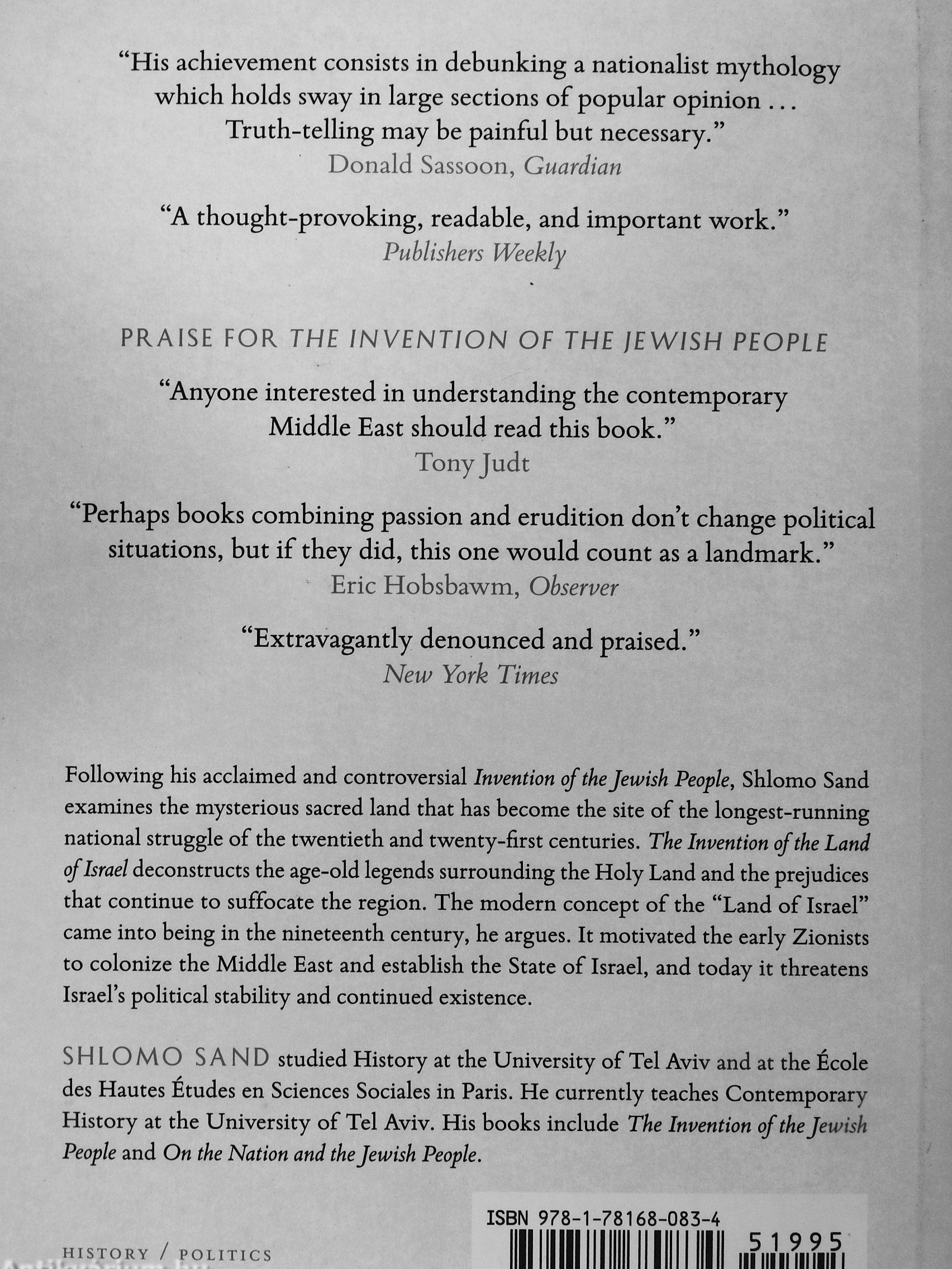 Following his acclaimed and controversial Invention of the Jewish People, Shlomo Sand examines the mysterious sacred land that has become the site of the longest-running national struggle of the twentieth and twenty-first centuries. The Invention of the Land of Israel deconstructs the age-old legends surrounding the Holy Land and the prejudices that continue to suffocate the region. The modern concept of the "Land of Israel" came into being in the nineteenth century, he argues. It motivated the early Zionists to colonize the Middle East and establish the State of Israel, and today it threatens Israel's political stability and continued existence.