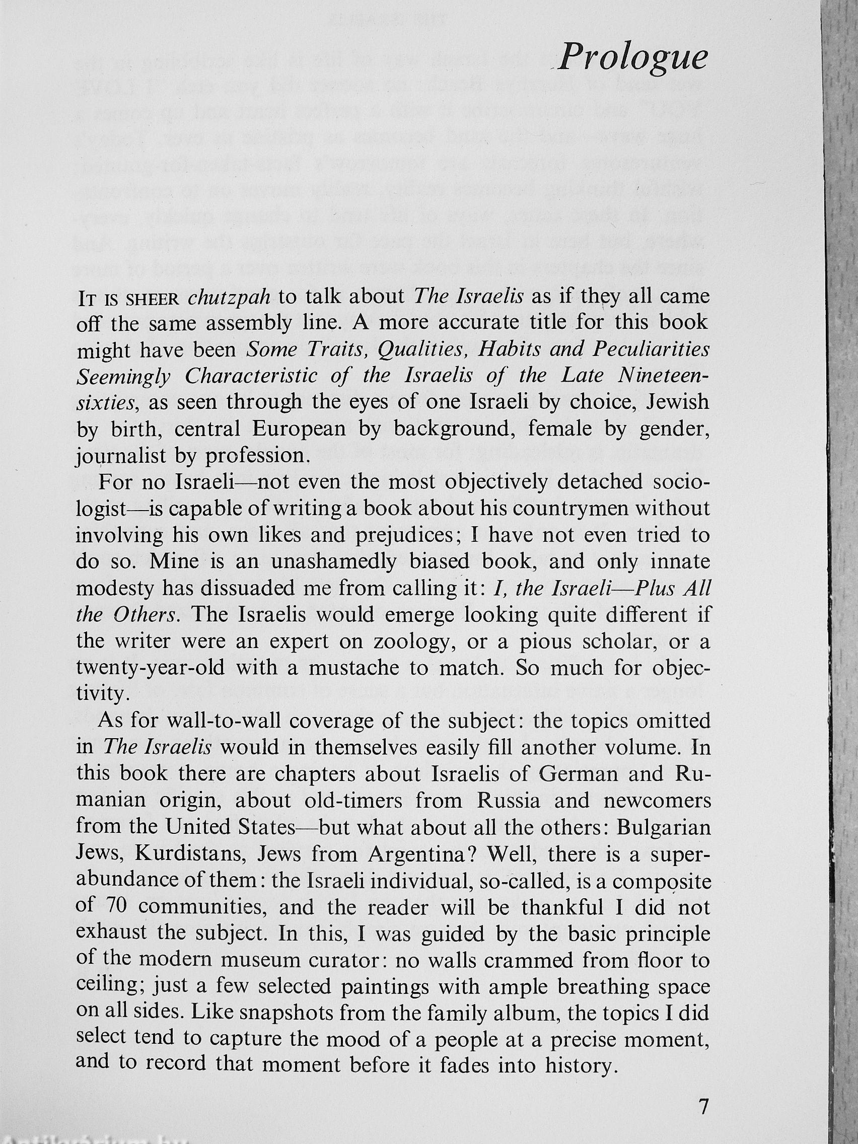 The adjectives "American," "British," "French," and so on do —although sometimes faultily —describe certain national traits. The Israelis then is an attempt to describe the people of Israel, and more specifically to pinpoint their national characteristics.