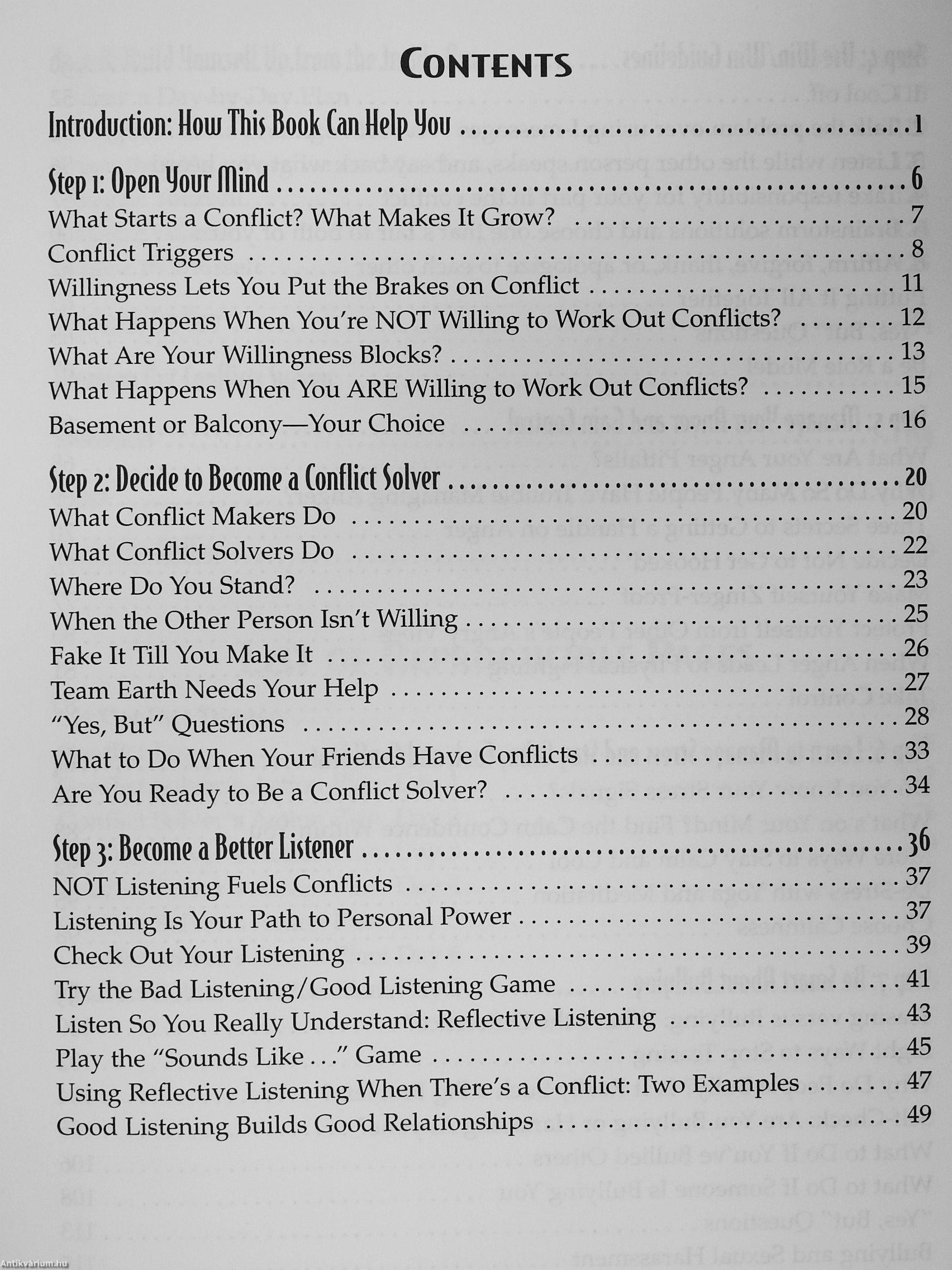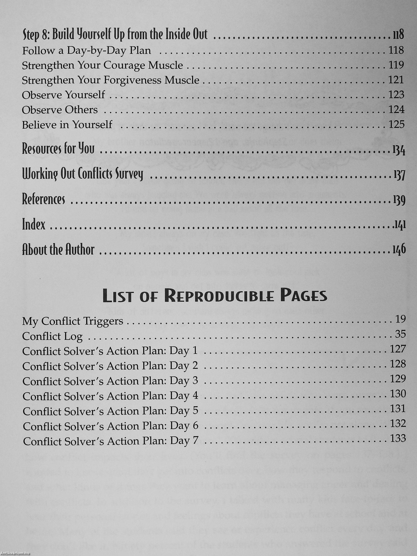 Things to try when other people aren't willing to work out conflicts Real-life examples of conflicts kids have had and how they solved them Activities and action plans that help you use what you're learning in your everyday life Self-tests, conflict logs, and other forms for tracking your progress