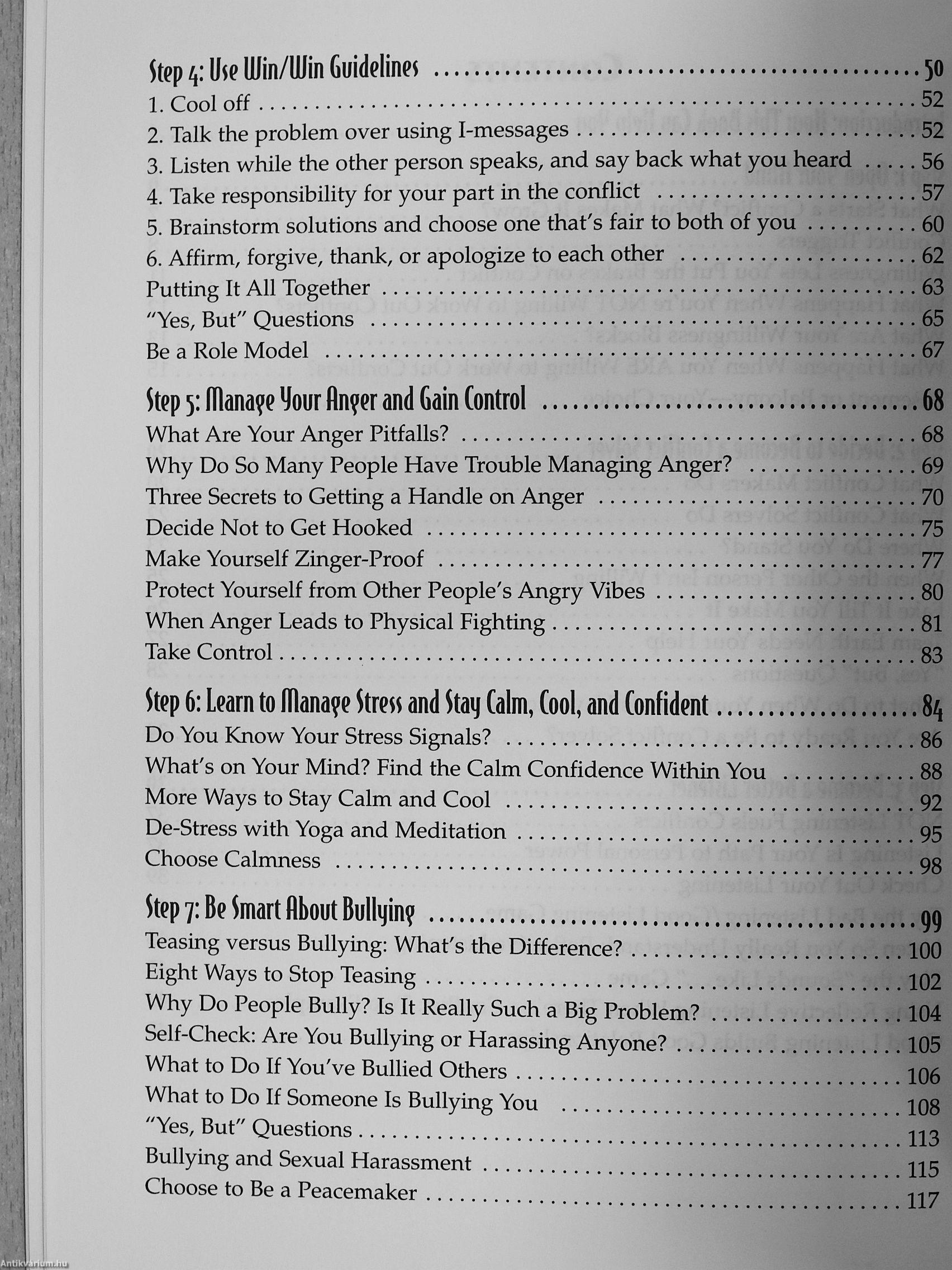 Skills for becoming a better listener Guidelines for talking out problems Secrets to getting a handle on anger Strategies for de-stressing Ways to deal with teasing and bullying