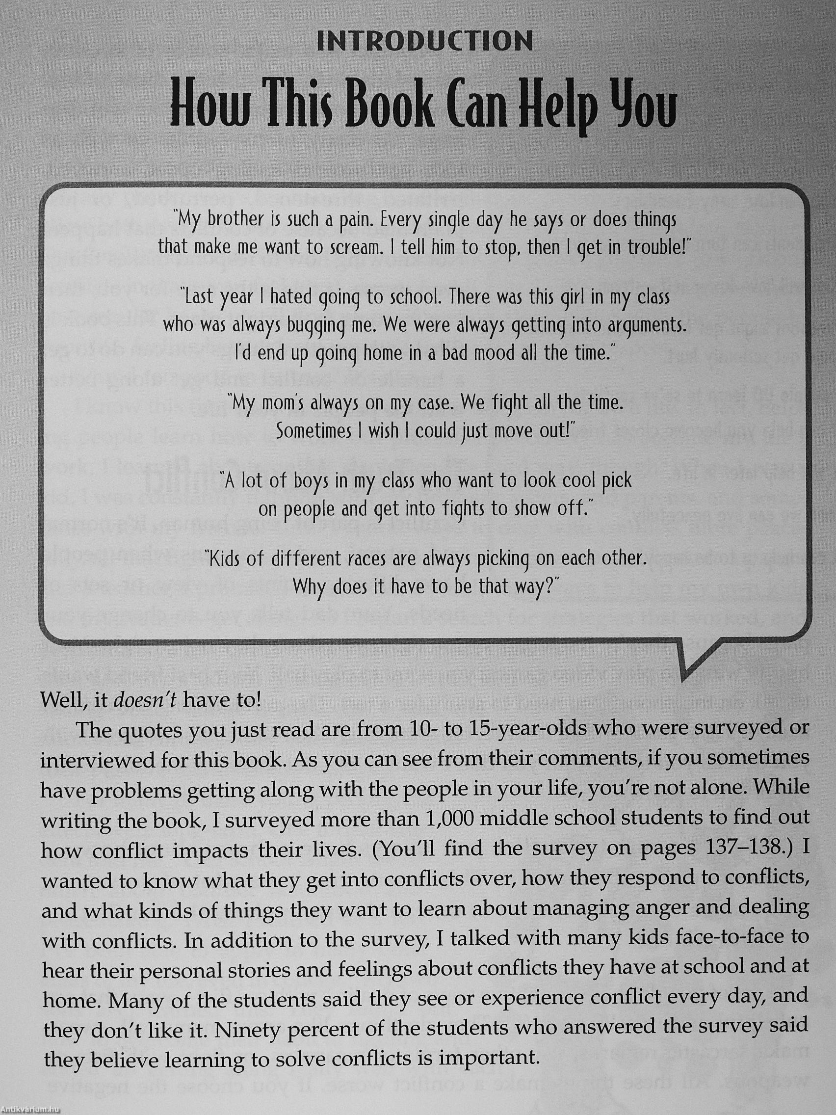Throughout, you'll read quotes and insights from middle school students across the country. More than 1,000 responded to a nationwide survey. Like you, they care about conflict and want to do something about it.