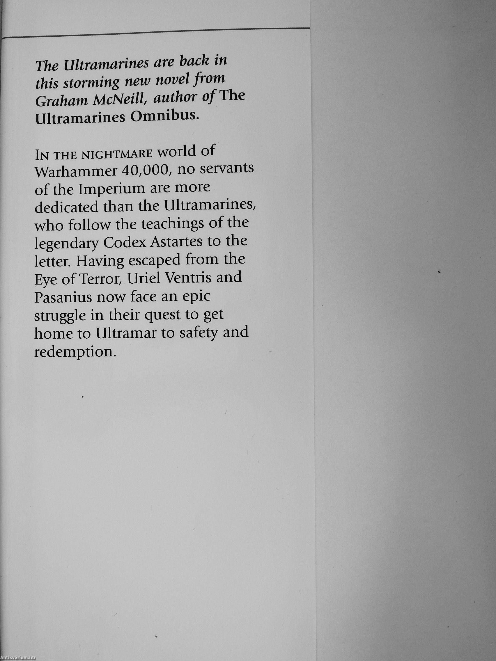 In the nightmare world of Warhammer 40,000, no servants of the Imperium are more dedicated than the Ultramarines, who follow the teachings of the legendary Codex Astartes to the letter Having escaped from the Eye of Terror, Uriel Ventris and Pasanius now face an epic struggle in their quest to get home to Ultramar to safety and redemption.