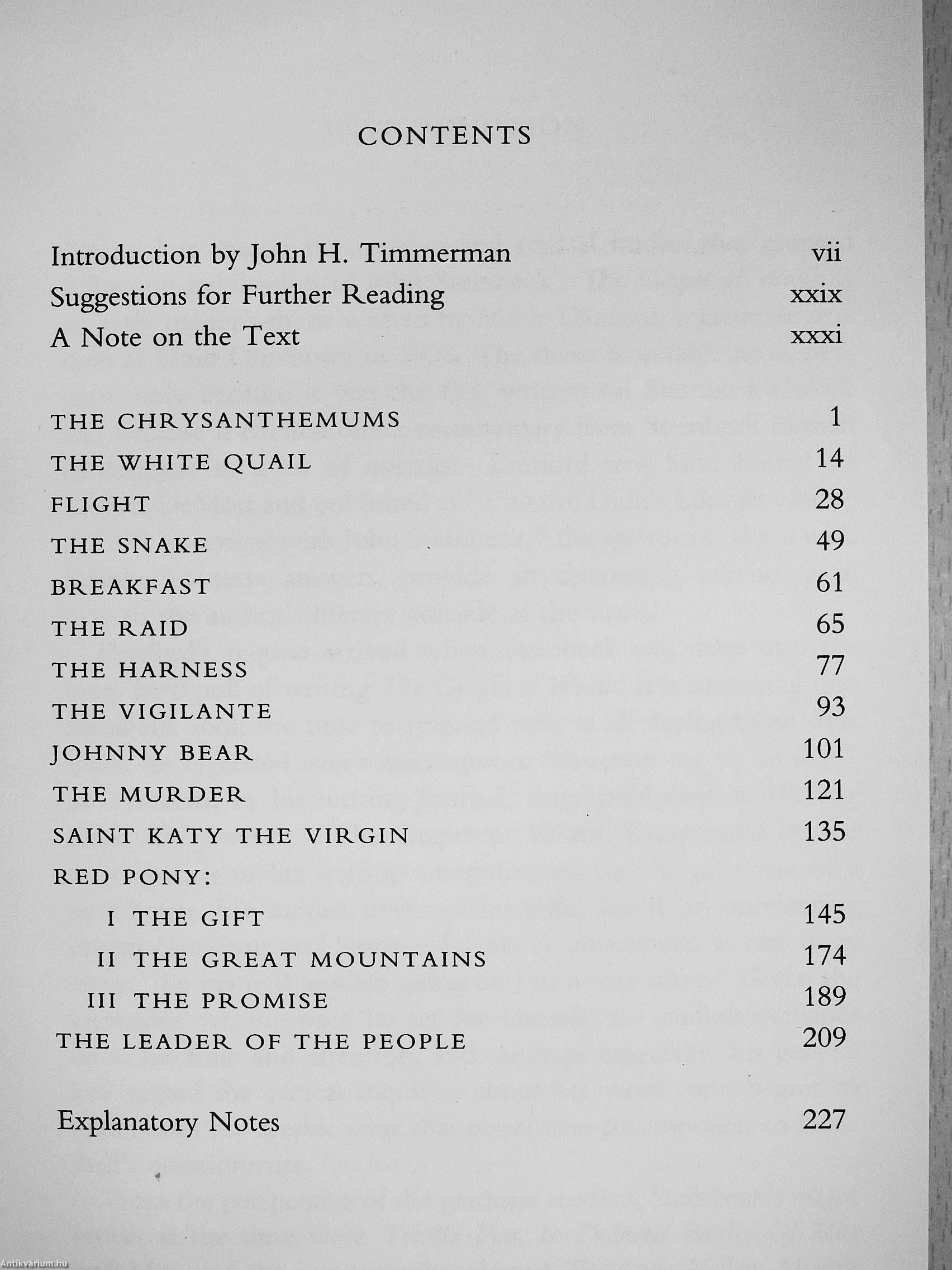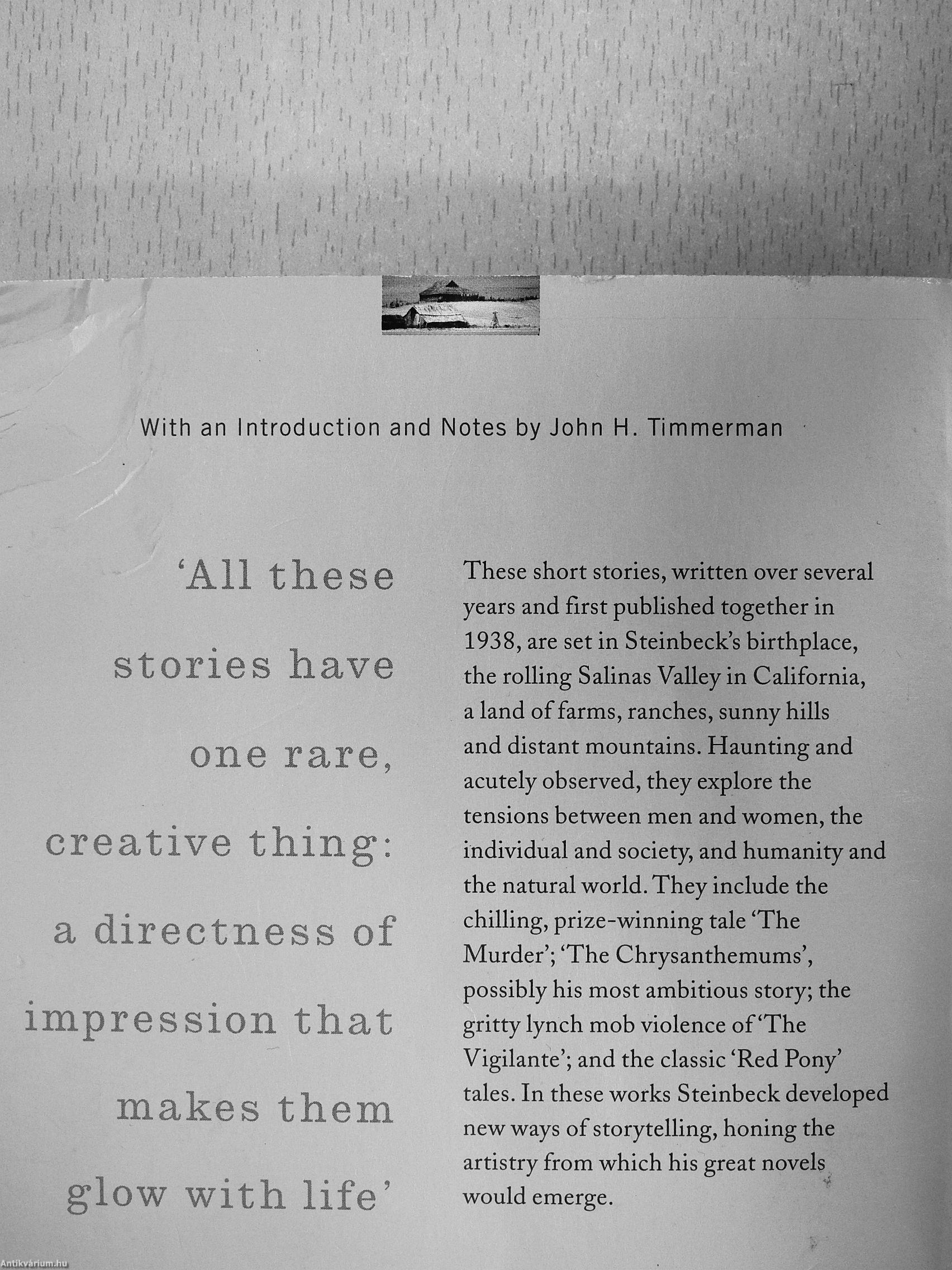 These short stories, written over several years and first published together in 1938, are set in Steinbeck's birthplace, the rolling Salinas Valley in California, a land of farms, ranches, sunny hills and distant mountains. Haunting and acutely observed, they explore the tensions between men and women, the individual and society, and humanity and the natural world. They include the chilling, prize-winning tale 'The Murder'; 'The Chrysanthemums', possibly his most ambitious story; the gritty lynch mob violence of'The Vigilante'; and the classic 'Red Pony' tales. In these works Steinbeck developed new ways of storyteUing, honing the artistry from which his great novels would emerge.