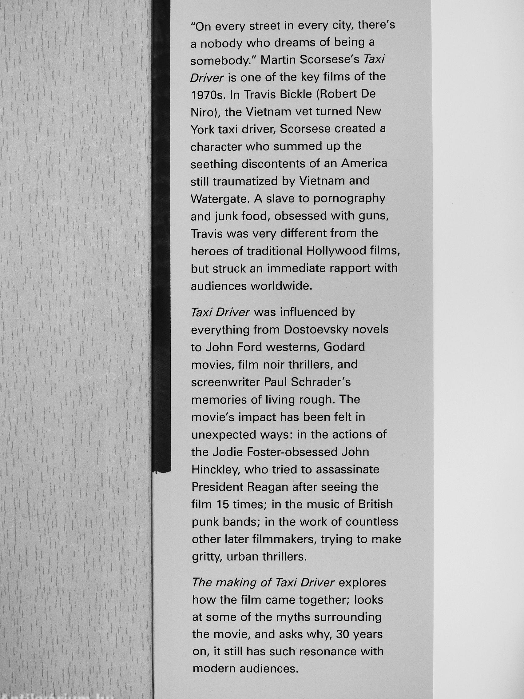 Tracing Scorsese's many influences that led to Taxi Driver, from John Ford westerns to film noir thrillers, and the film's impact on the work of countless other directors, The making of Taxi Driver explores how this modern classic came together. And, 3Q years on, describes how the film has achieved genuine cult status with subsequent generations of movie audiences.