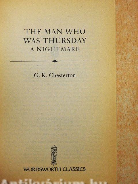 WORDSWORTH CLASSICS G. K. CHESTERTON Set in the early part of the twentieth century The Man Who Was Thursday: A Nightmare describes in a sometimes hilarious but often chilling way the activities of anarchists dedicated to the destruction of the world order. From its early phantasmagorical setting the book takes the reader through fantastic, surreal and thrilling adventures to a bizarre climax. And as in all nightmares there comes a terrible moment when the dreamer must awake ... Cover Design by Róbert Mathias, Publishing Workshop Cover Illustration Detail from On the Banks of the Seine byjean Beraud (1849-1936) Courtesy of Fine Art Photographic Library, London