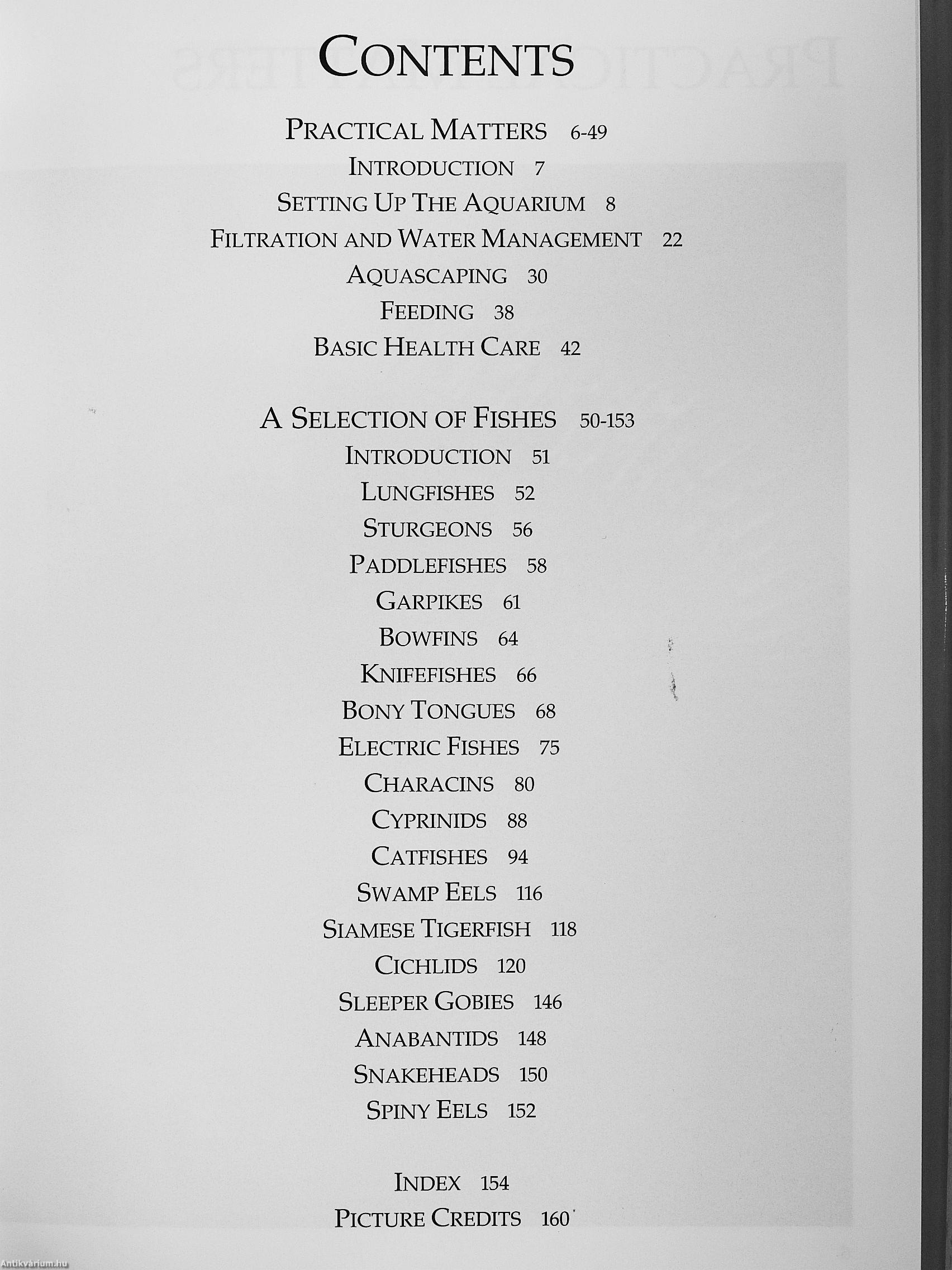 The second part focuses on a selection of freshwater fishes that qualify as 'tank busters'. These include lungfishes, sturgeons, paddlefishes, garpikes, bowfins, knifefishes, bony tongues, electric fishes, characins, cyprinids, catfishes, swamp eels, Siamese tigerfishes, cichlids, sleeper gobies, anabantids, snakeheads and spiny eels.