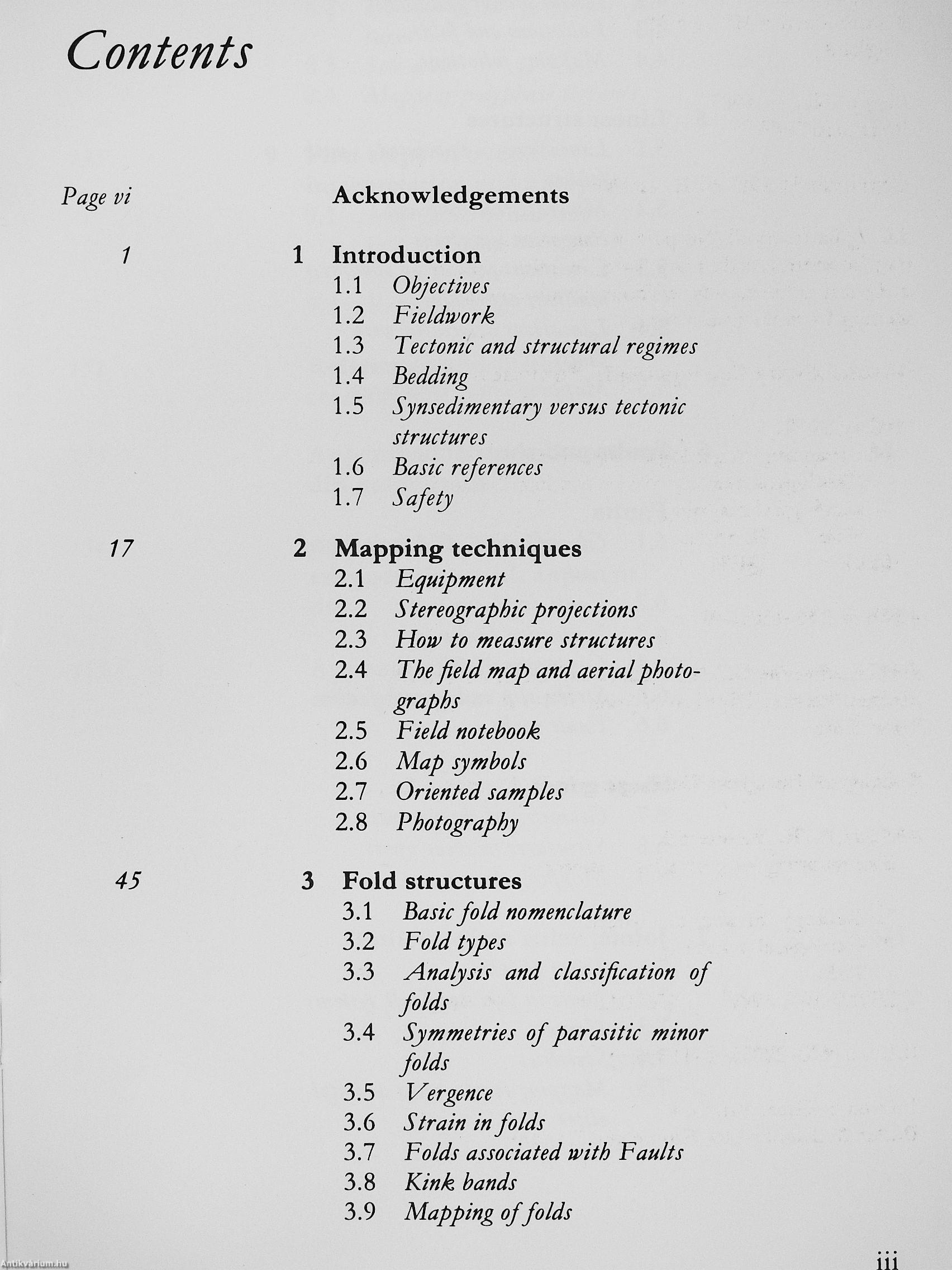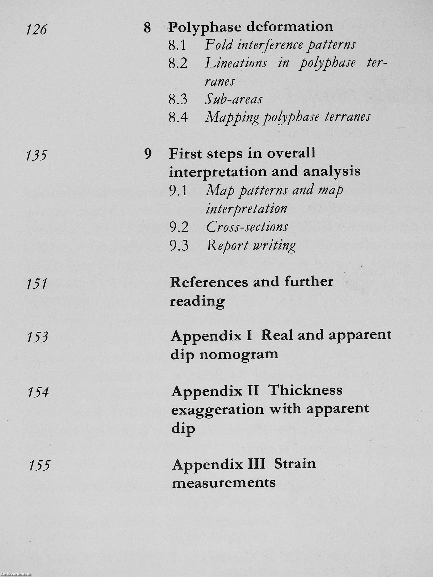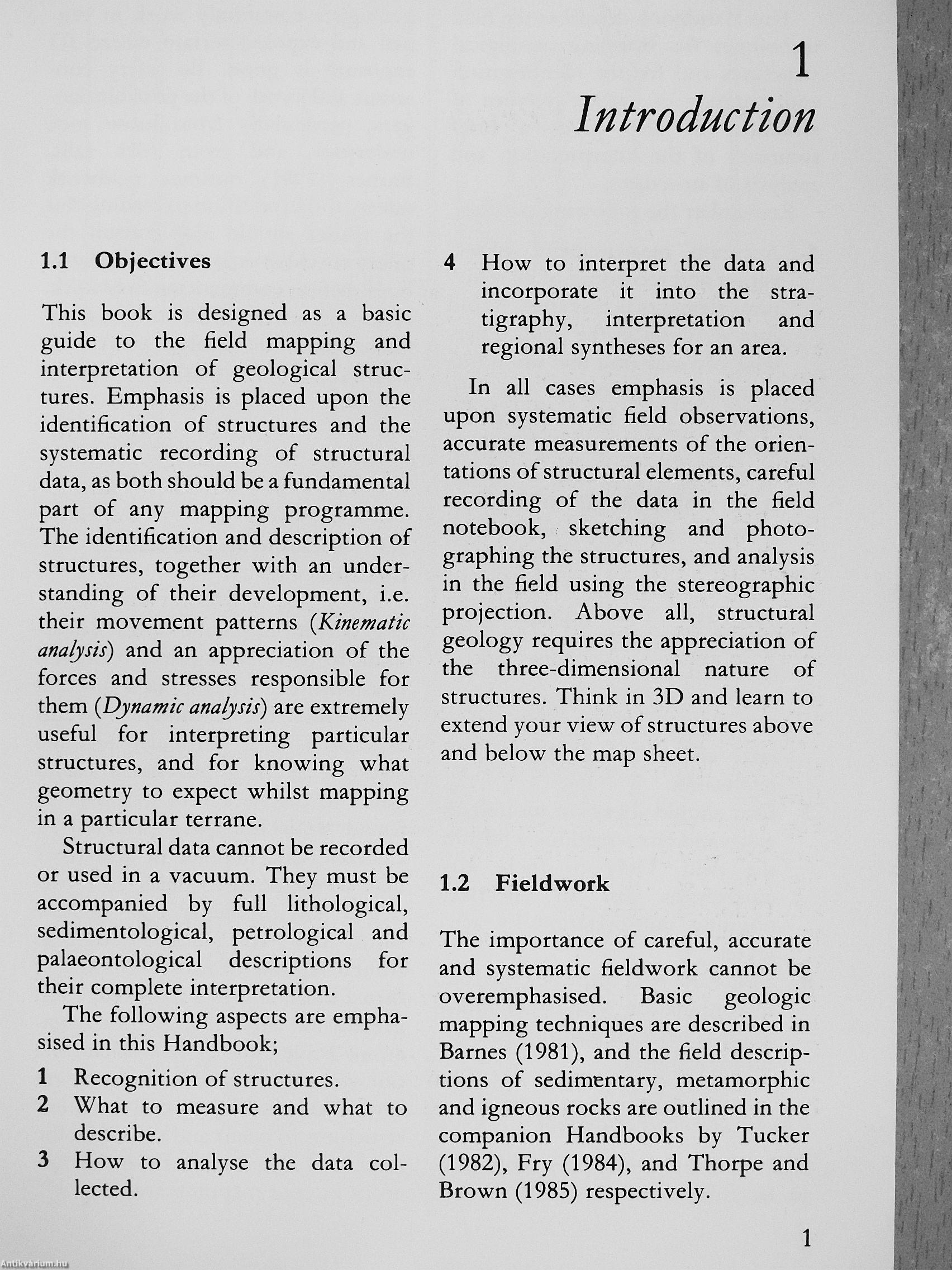 Contents: Introduction to Structural Elements - Mapping and Recording Techniques and Equipment-Classification, Analysis, Measurement and Description of:-fold structures, foliations, lineations, fault and shear zones, joints, veins, stylolites-Polyphase Deformation - Preliminary Interpretation and Data Mapping - Strain Measurements - Recording Procedures -References-Index.