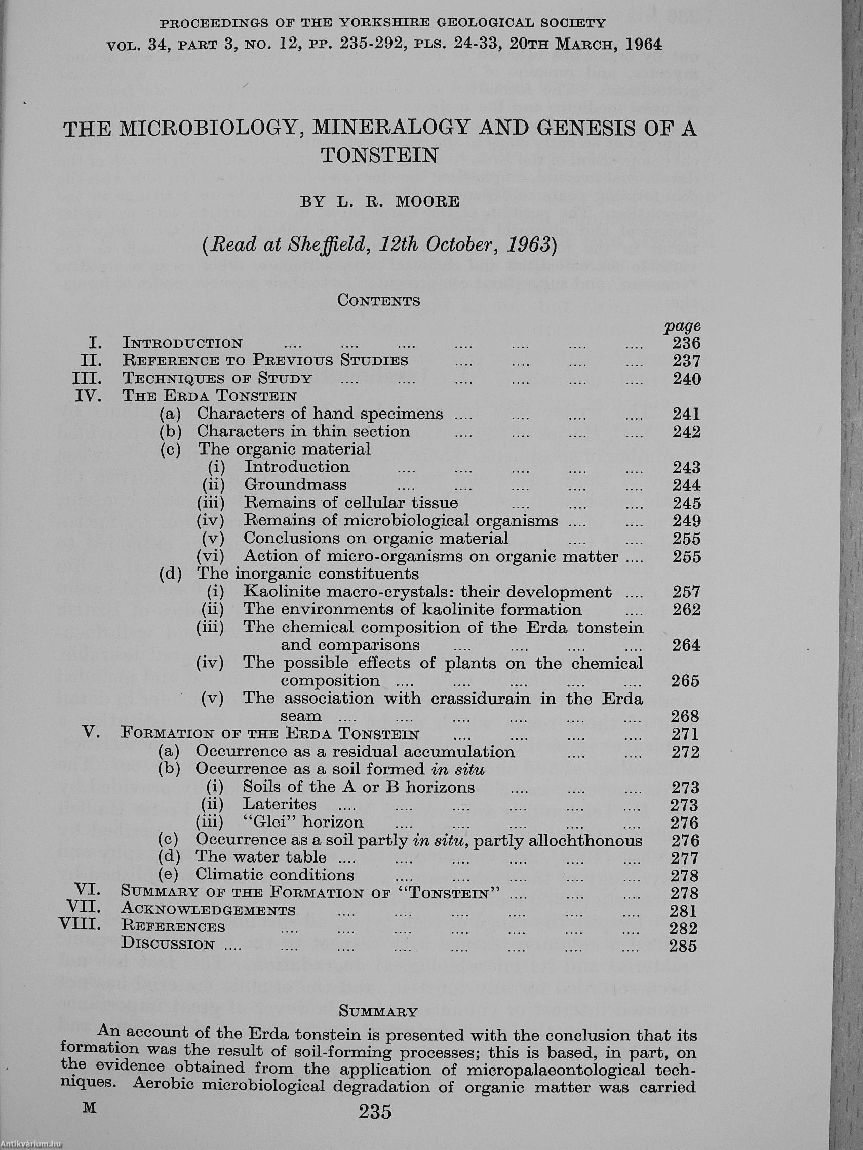 | Megjegyzés: | L. R. Moore szerző által dedikált példány. Fekete-fehér ábrákkal. Különlenyomat. |