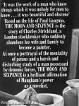 of genius and a harsh and disturbing study of a man possessed by demonic forces, THE MOON AND SIXPENCE is a brilliant affirmation of Maugham's power ^
