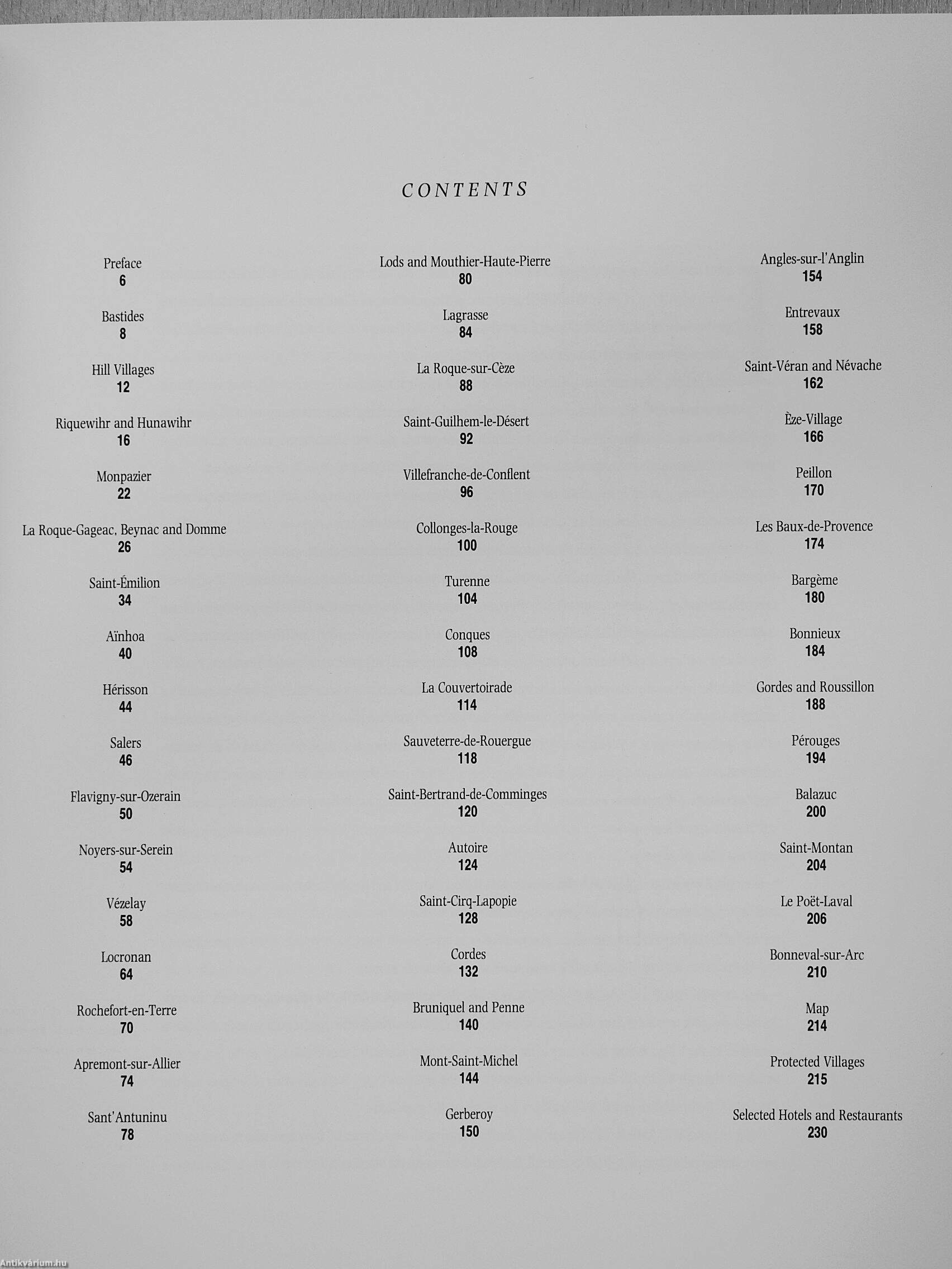 Complementing the selection of villages is a list of nearby hotels and restaurants, with details of prices and menus. An extended list of protected villages will prove a useful guide for travelers to France and for all those with an interest in architectural preservation.