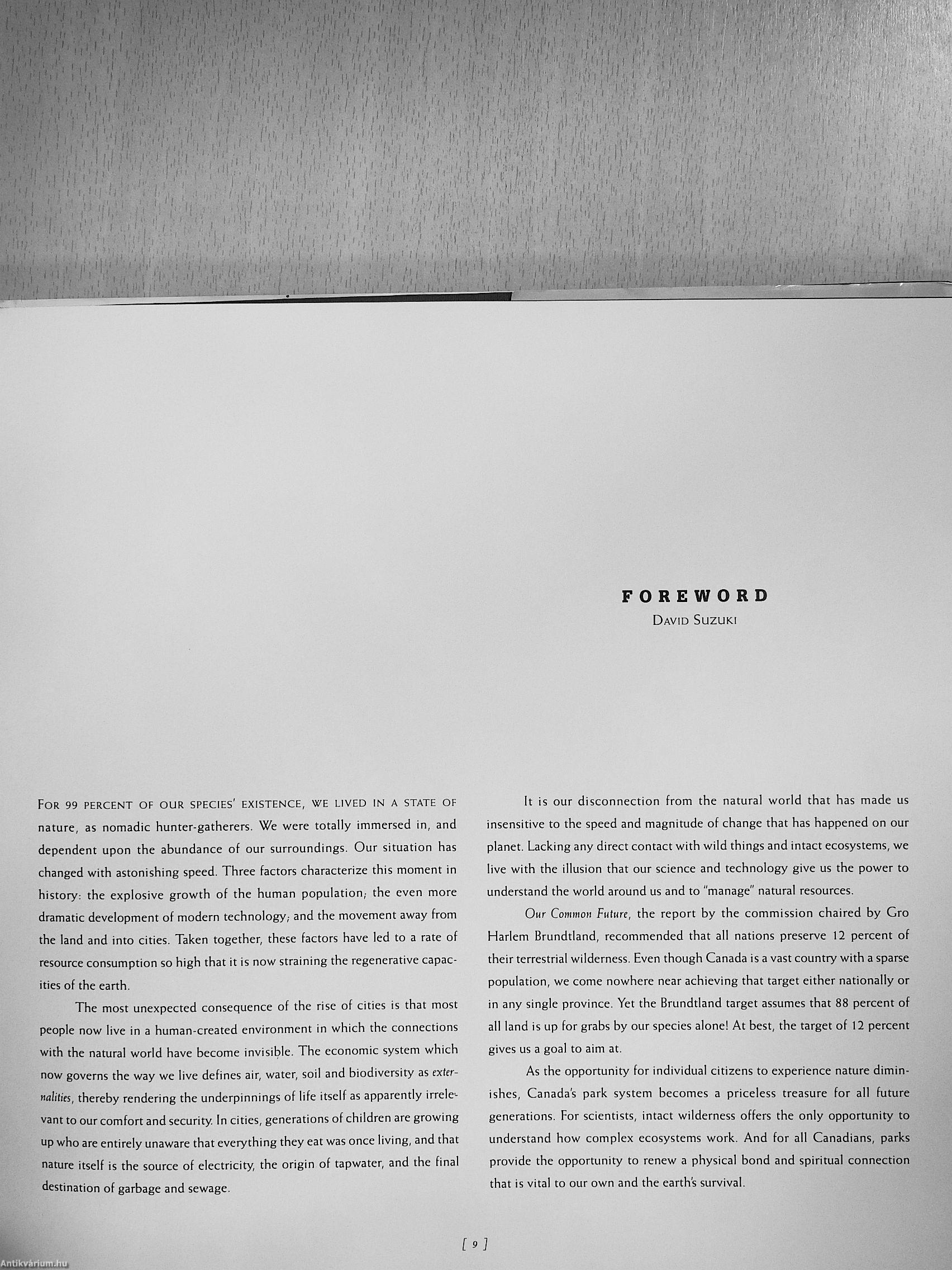 No OTHER NATION ON EARTH CONTAINS WITHIN ITS BOUNDARIES A PRISTINE wilderness at once so varied and extensive. From the desolate, sweeping vistas of the arctic lowlands to the ancient, eerie gloom of the west coast rainforest, from the jagged, icy peaks of the northwest mountains, to the worn stone outcroppings of the Canadian Shield, this is a land where a traveller still can find vestiges of primeval peace.