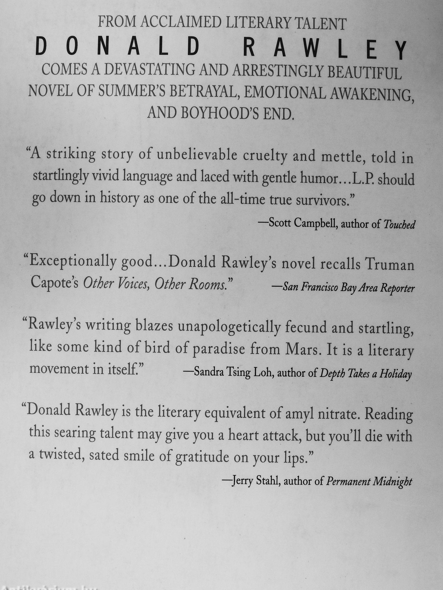 "Exceptionally good Donald Rawley's novel recalls Truman Capote's Other Voices, Other Rooms." —San Francisco Bay Area Reporter