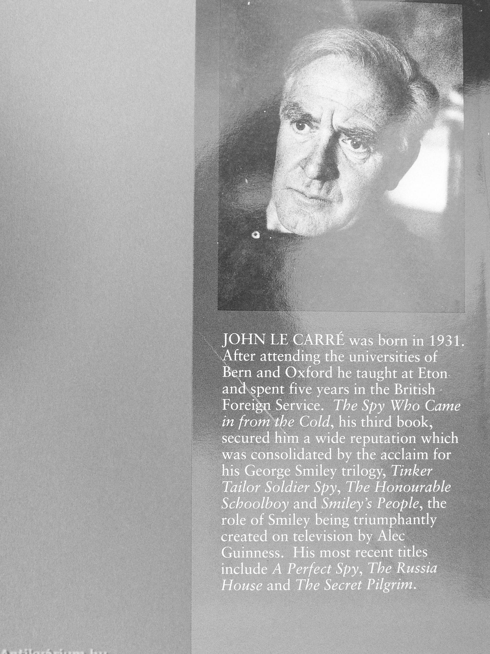 ^ JOHN LE CARRÉ was born in 1931. ev^fter attending the universities of : Bern and Oxford he taught at Eton an^spent five years in the British • Foreign Service. The Spy Who Came in from the Cold^ his third book, ; ~ secured him a wide reputation which-was consolidated by the acclaim for his George Smiley trilogy. Tinker Tailor Soldier Spy, The Honourable Schoolboy and Smiley s People^ thc \ role of Smiley being triumphantly . created on television by Alec - . " Guinness. His most recent titles ¦ ~ include A Perfect Spy, The Russia ^ House and The Secret Pilgrim.