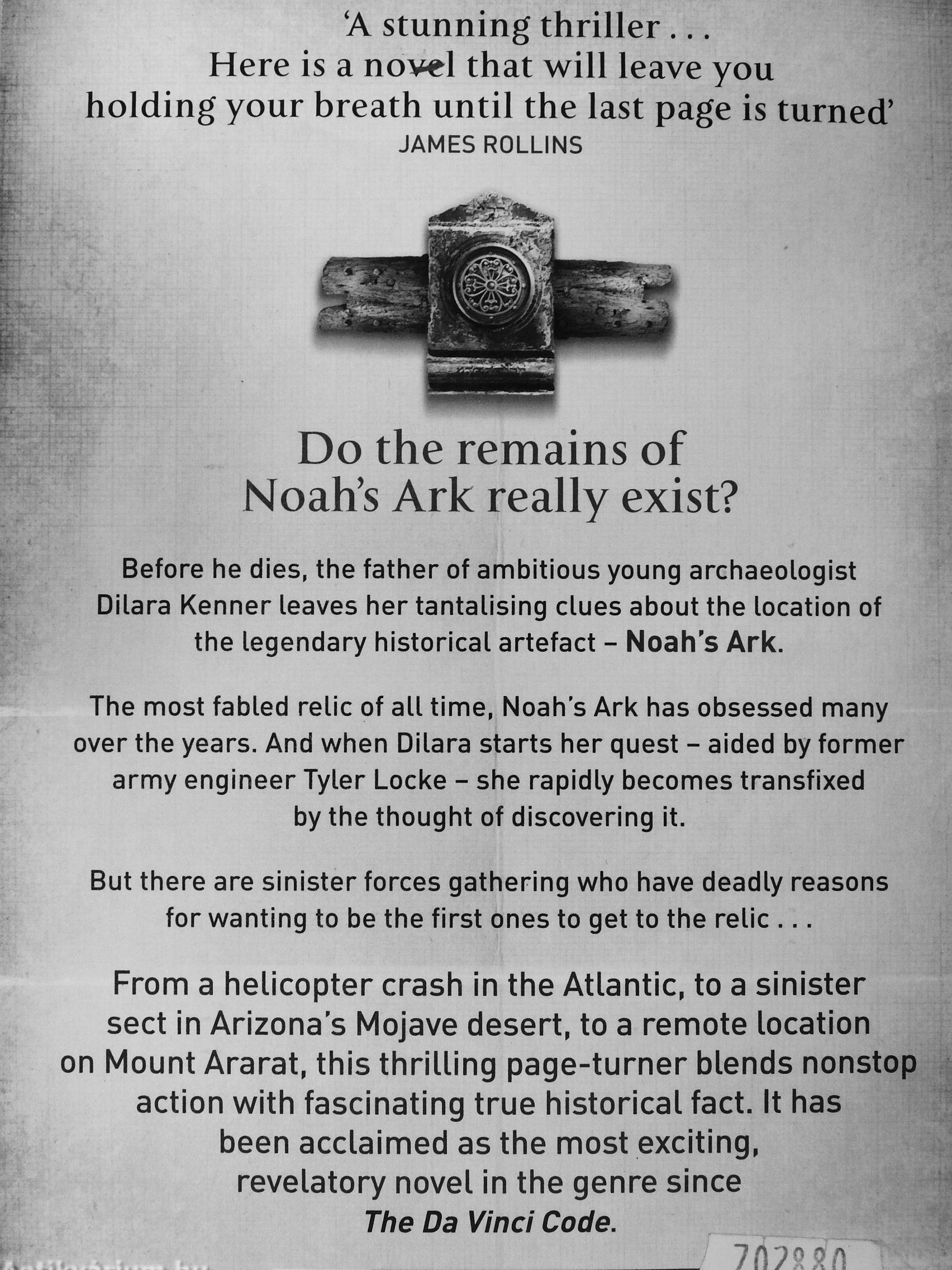 From a helicopter crash in the Atlantic, to a sinister sect in Arizona's Mojave desert, to a remote location on Mount Ararat, this thrilling page-turner blends nonstop action with fascinating true historical fact. It has been acclaimed as the most exciting, revelatory novel in the genre since The Da Vinci Code.