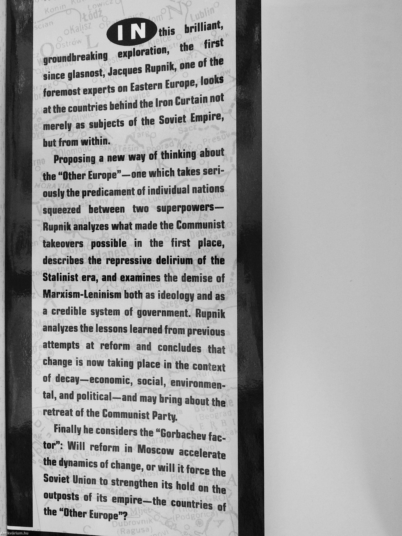 groundbreaking exploration, the first since glasnost, Jacques Rupnik, one of the foremost experts on Eastern Europe, looks at the countries behind the Iron Curtain not merely as subjects of the Soviet Empire, but from within.