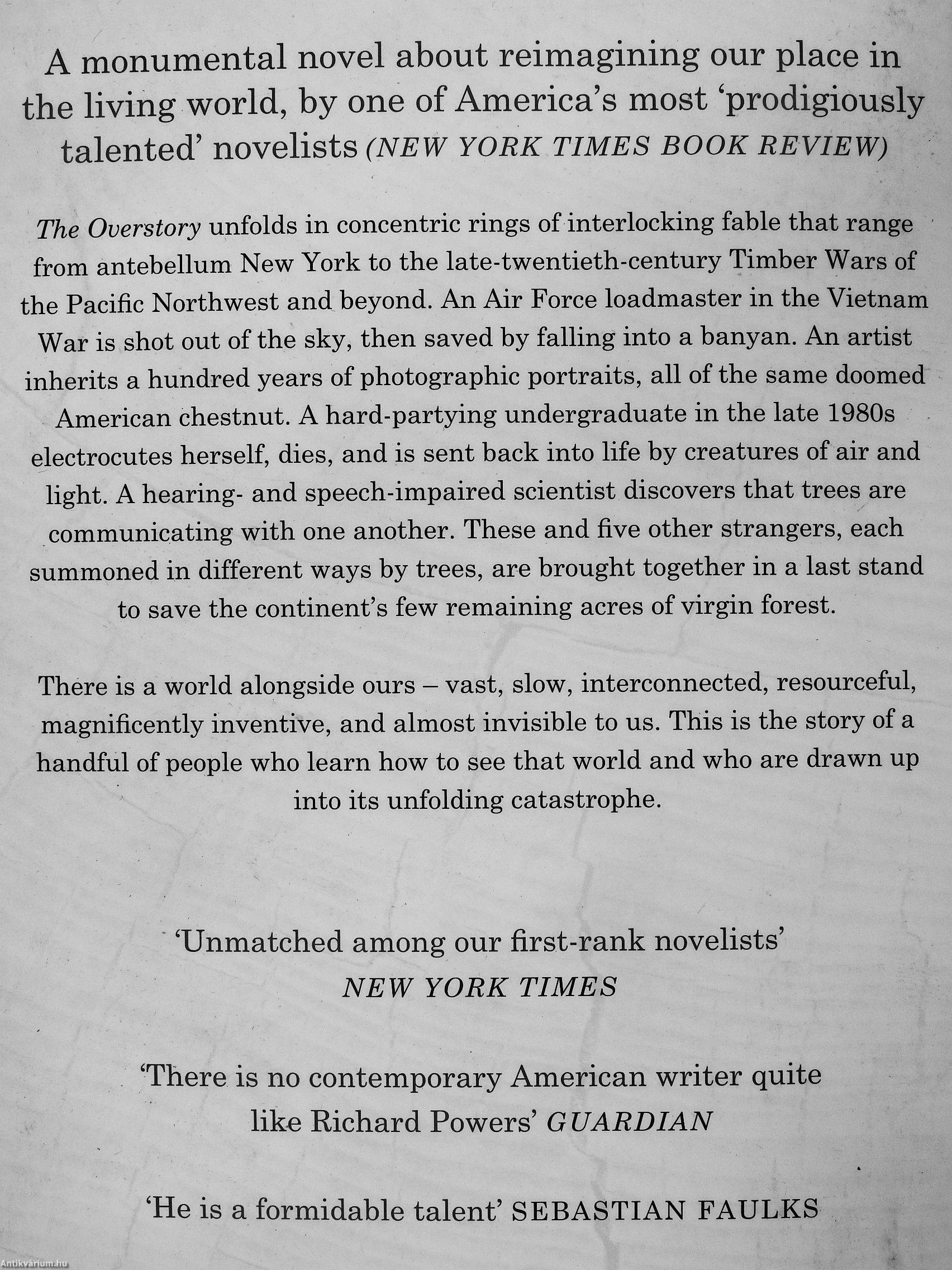 The Overstory unfolds in concentric rings of interlocking fable that range from antebellum New York to the late-twentieth-century Timber Wars of the Pacific Northwest and beyond. An Air Force loadmaster in the Vietnam