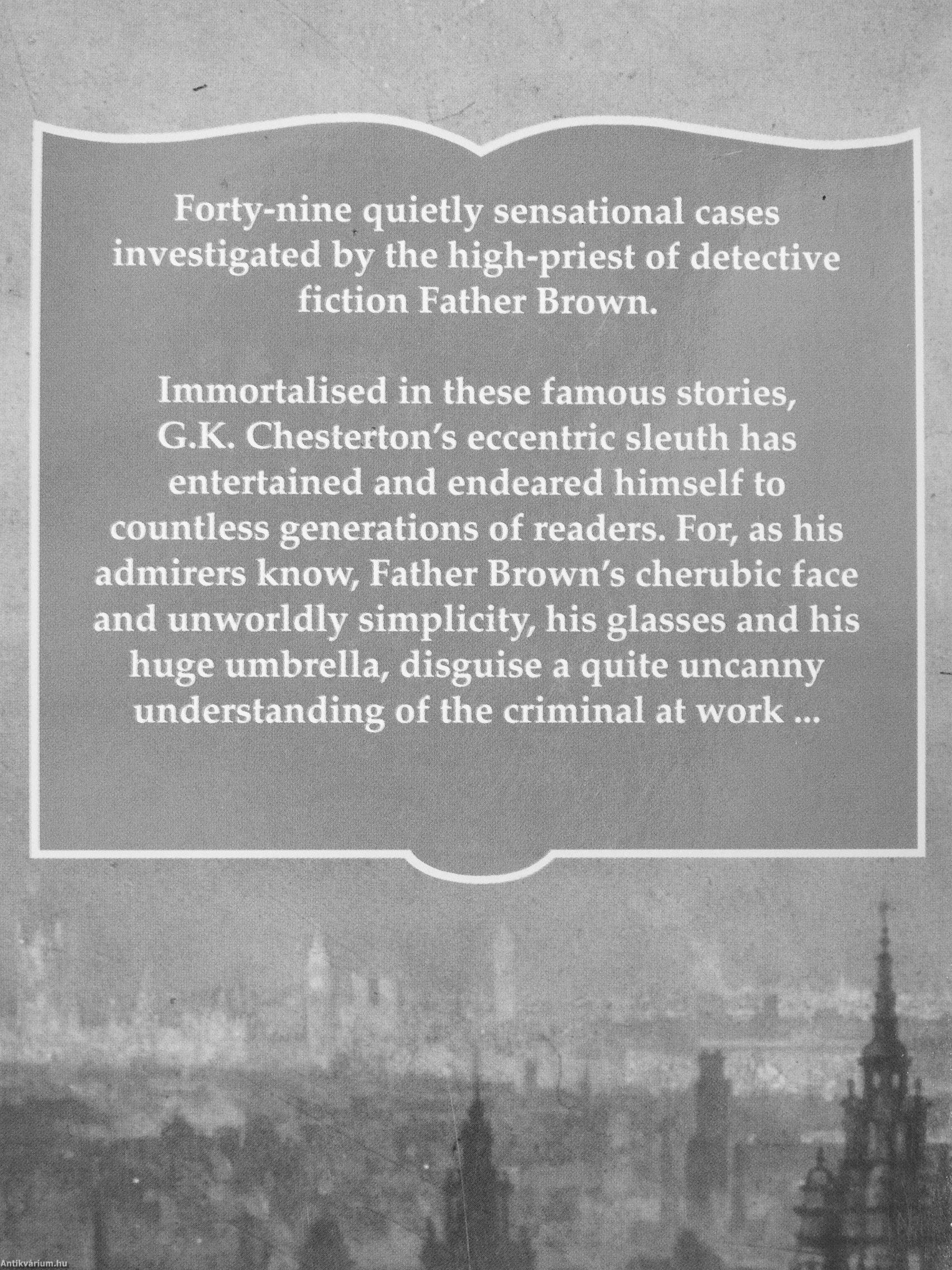 Immortalised in these famous stories, G.K. Chesterton's eccentric sleuth has entertained and endeared himself to countless generations of readers. For, as his admirers know. Father Brown's cherubic face and unworldly simplicity, his glasses and his huge umbrella, disguise a quite uncanny understanding of the criminal at work