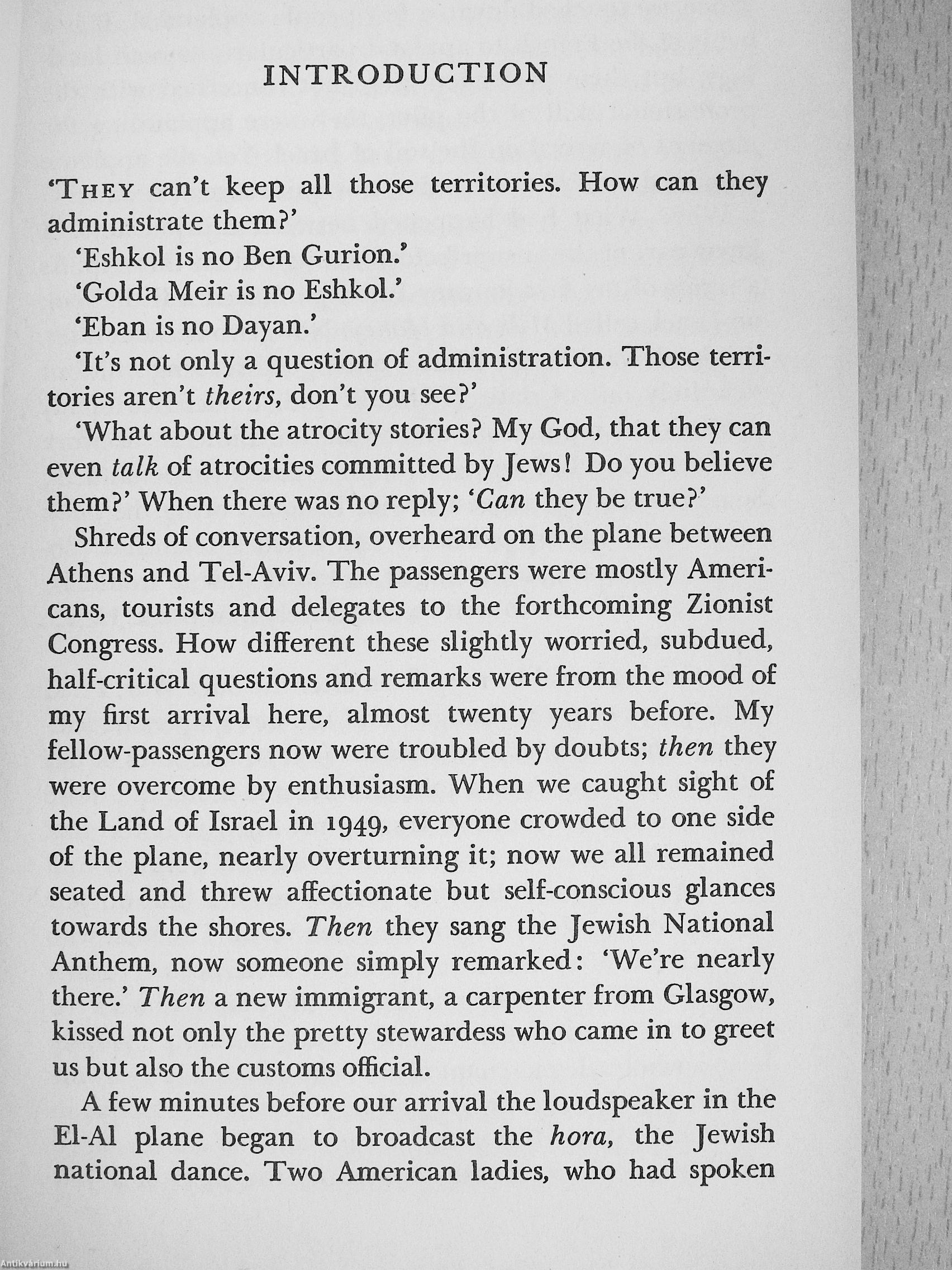 This is not a dry scholarly book on the Middle Eastern conflict, nor is it an attempt to ridicule what at times might seem a ridiculous problem. It is a living document of the people concerned most intimately with ttie problem, the Israelis - Arab and Jew alike.
