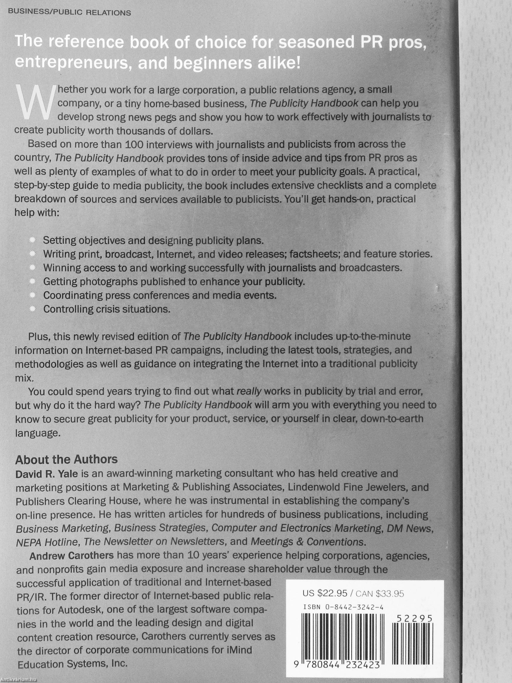 You could spend years trying to find out what really works in publicity by trial and error, but why do it the hard way? The Publicity Handbook will arm you with everything you need to know to secure great publicity for your product, service, or yourself in clear, down-to-earth language.
