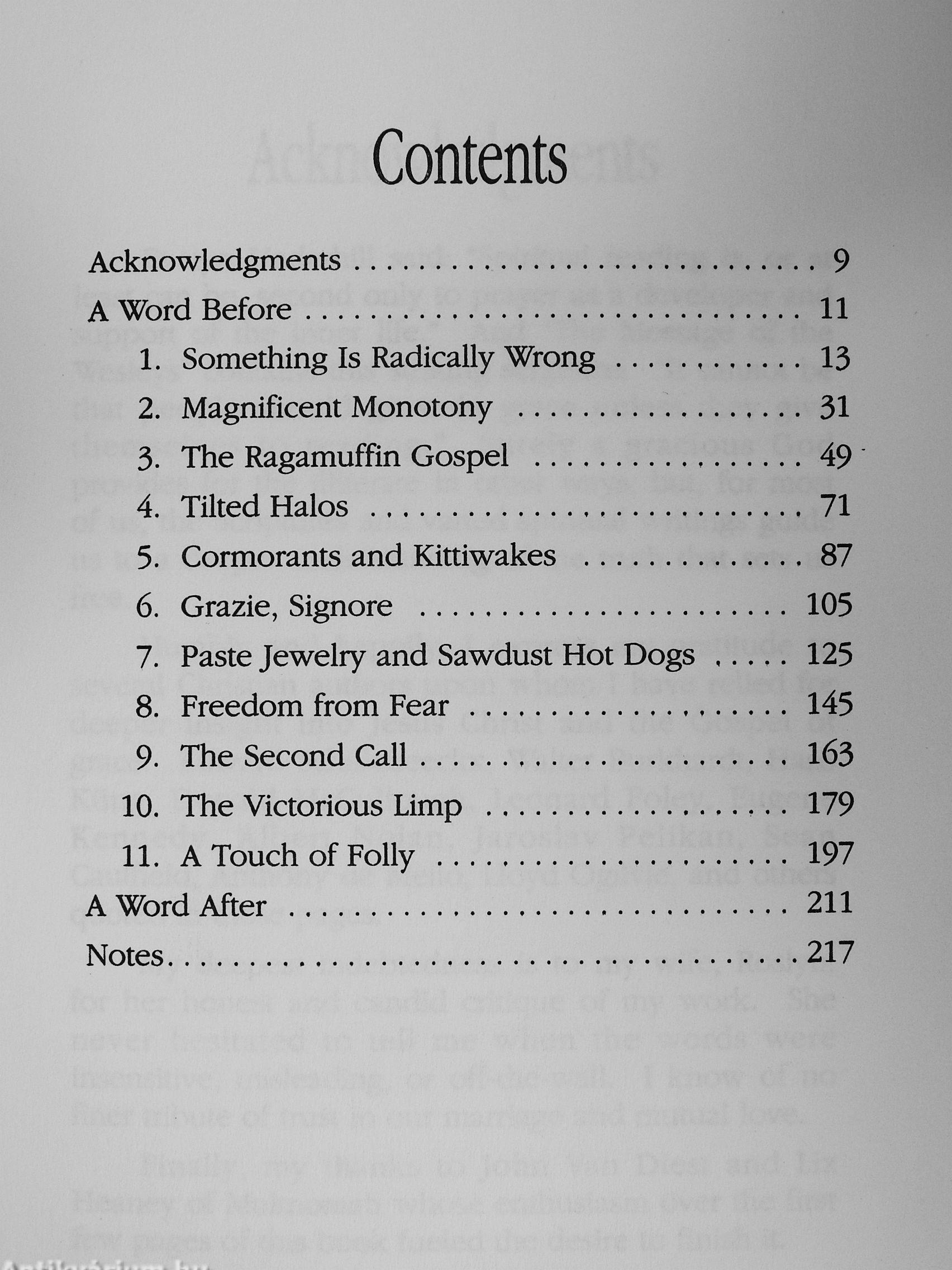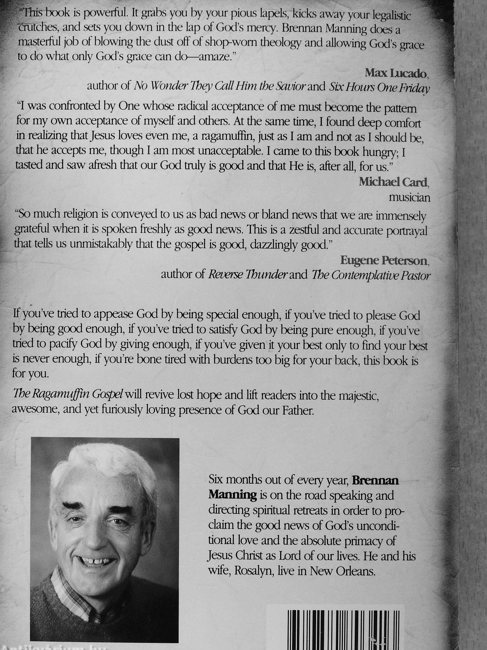 i was conliponted by One whose radical acceptance of me must become the pattern for my own acceptance of myself and others. At the same time, I found deep comfort in realizing that Jesus loves even me, a ragamulFin, just as 1 am and not as 1 should be, that he accepts me, though 1 am most unacceptable. 1 came to this book hungry; I tasted and saw afresh that our God truly is good and that He is, after all, for us."