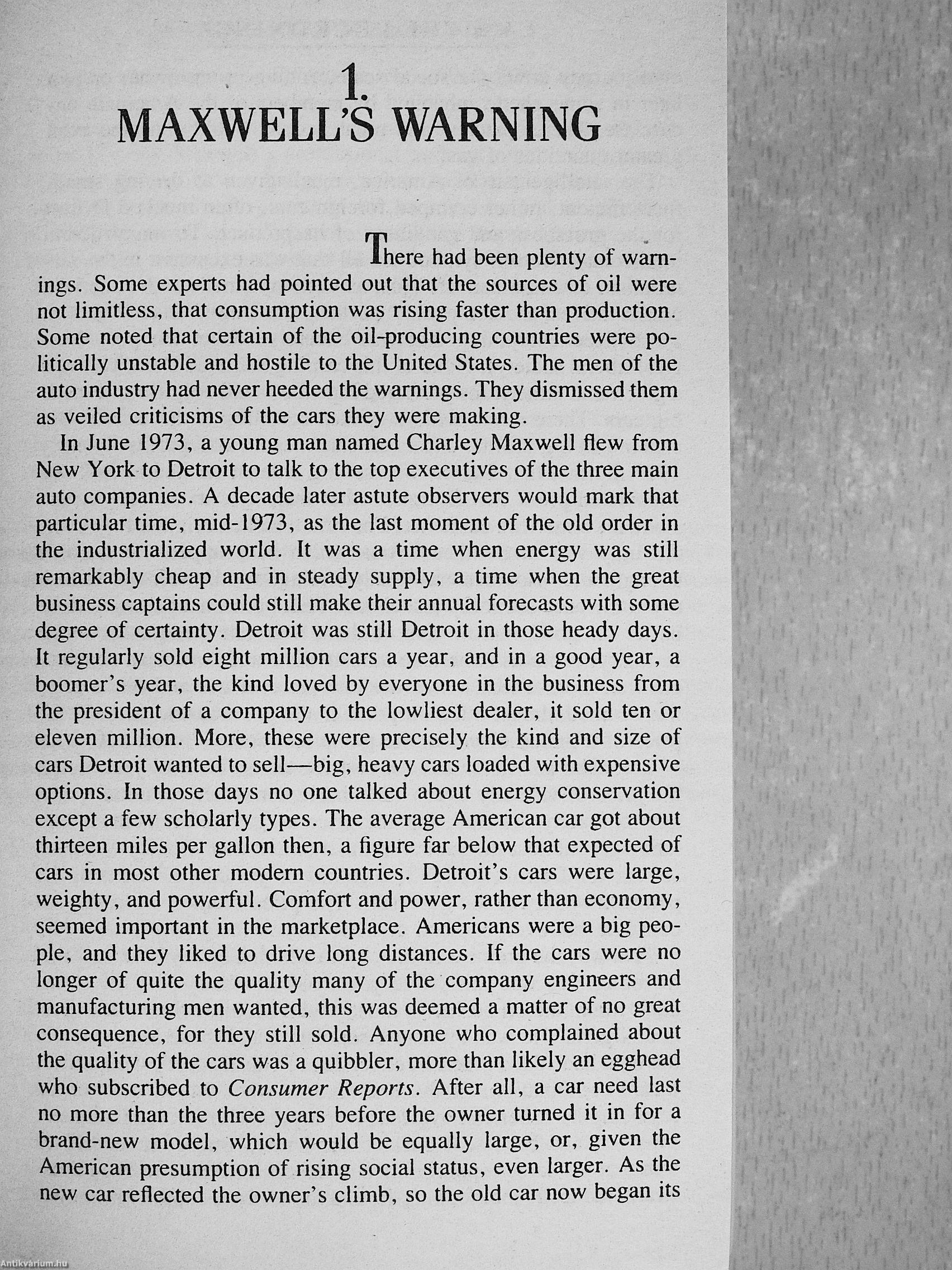 "The author applies the same stupendous reportorial energy to the auto industry] as he brought to Vietnam policymakers in The Best and the Brightest and to the media in The Powers That Be" The Wall Street Journal