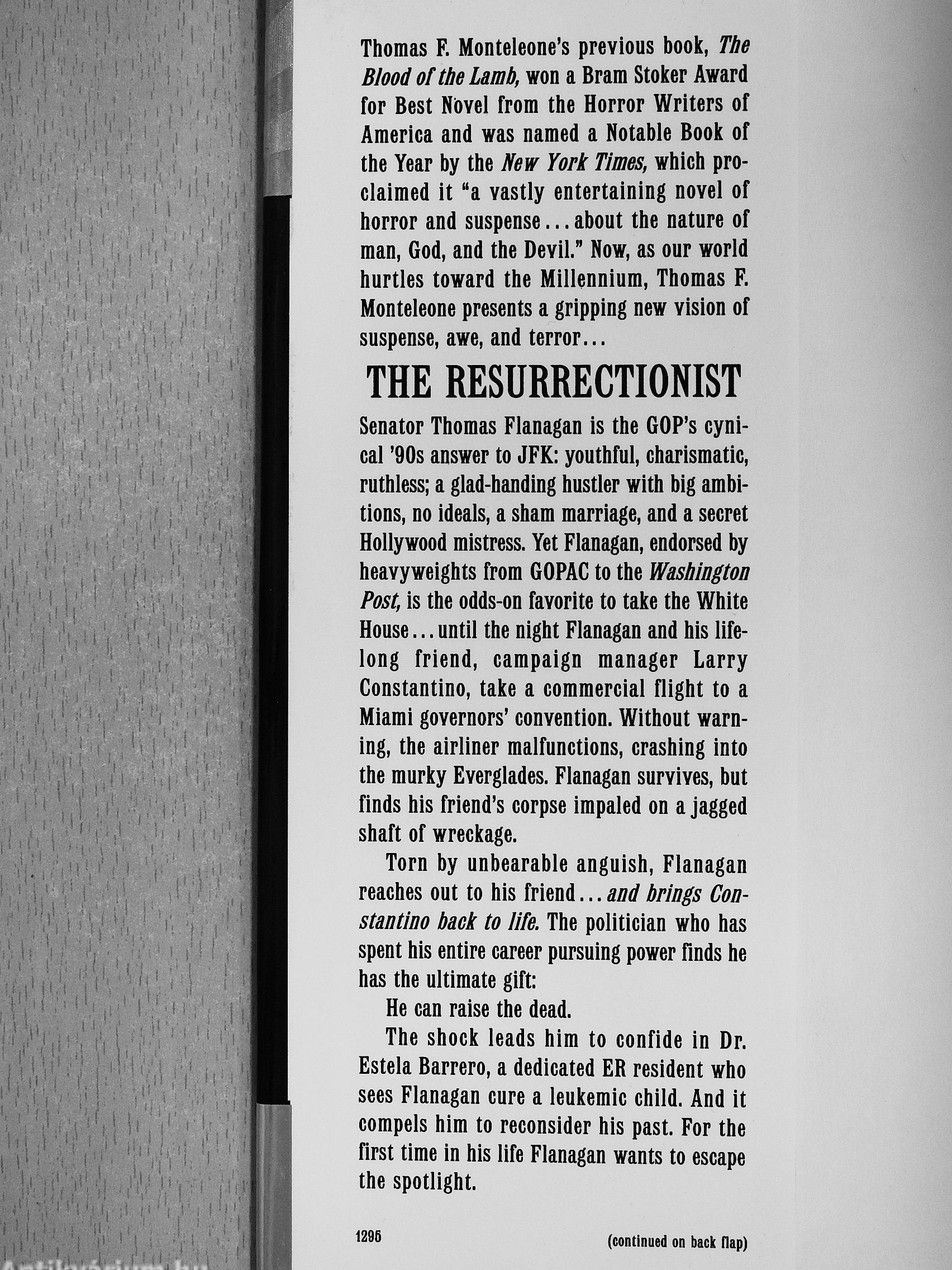 Thomas F. Monteleone's previous book, The Blood of the Lamb, won a Brain Stoker Award for Best Növel from the Horror Writers of America and was named a Notable Book of the Year by the New York Times, which proclaimed it "a vastly entertaining novel of horror and suspense about the nature of man, God, and the Devil." Now, as our world hurtles toward the Millennium, Thomas F. Monteleone presents a gripping new vision of suspense, awe, and terror