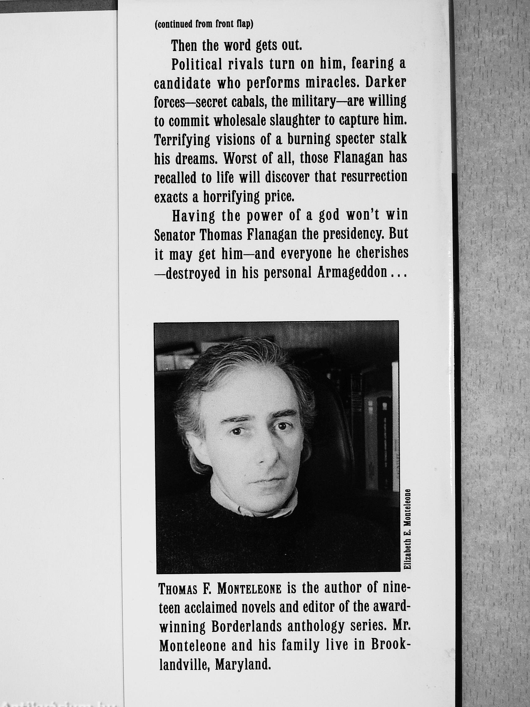 Thomas F. Monteleone is the author of nineteen acclaimed novels and editor of the award-winning Borderlands anthology series. Mr. Monteleone and his family live in Brook-landville, Maryland.