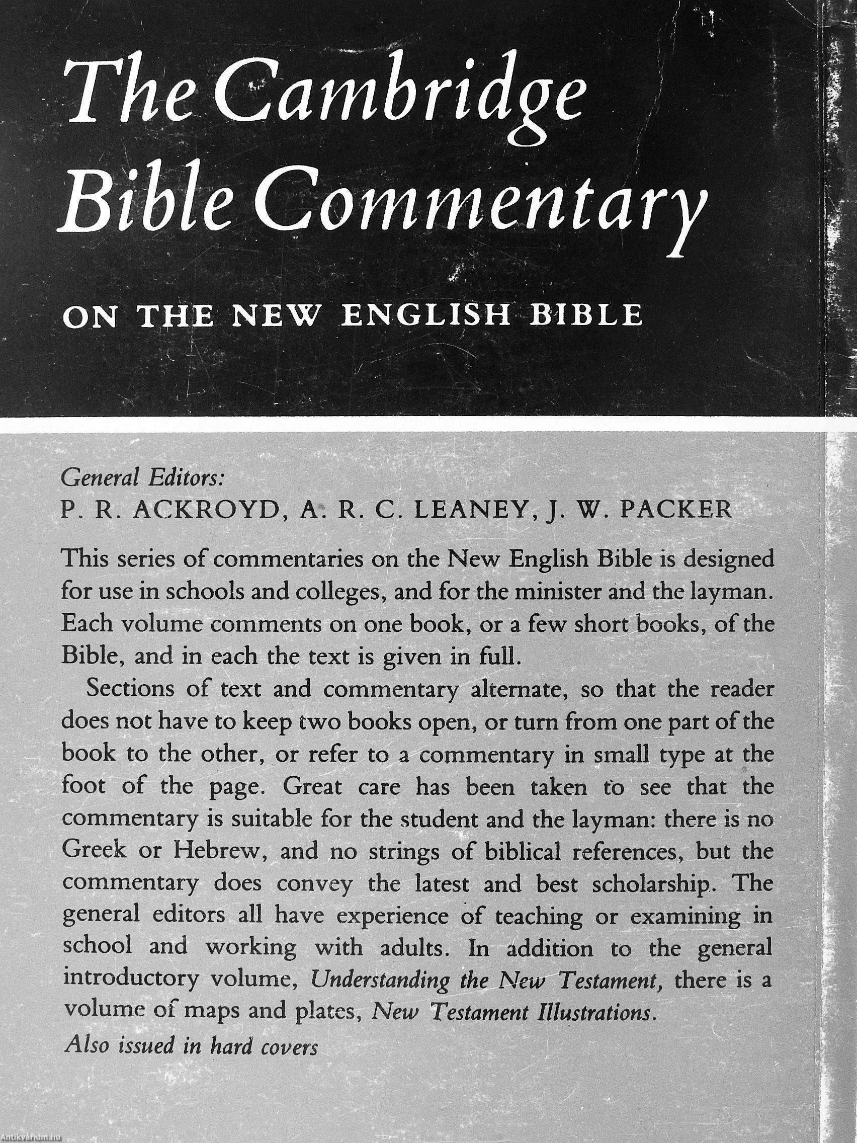 This series of commentaries on the New Enghsh Bible is designed for use in schools and colleges, and for the minister and the layman.! Each volume comments on one book, or a few short books, of the Bible, and in each the text is given in full.