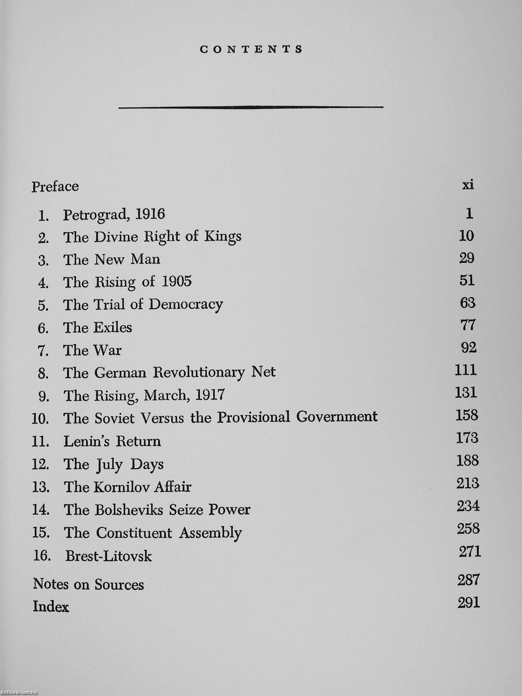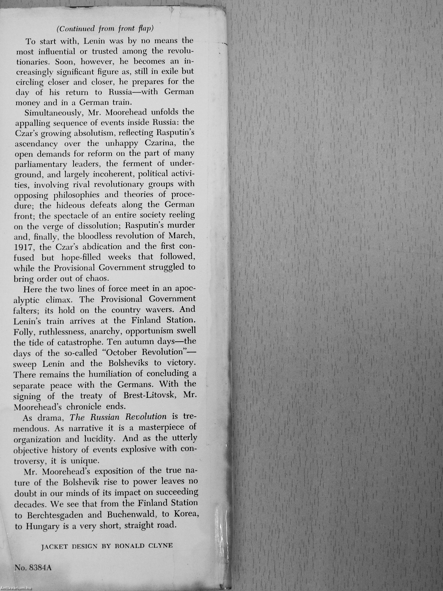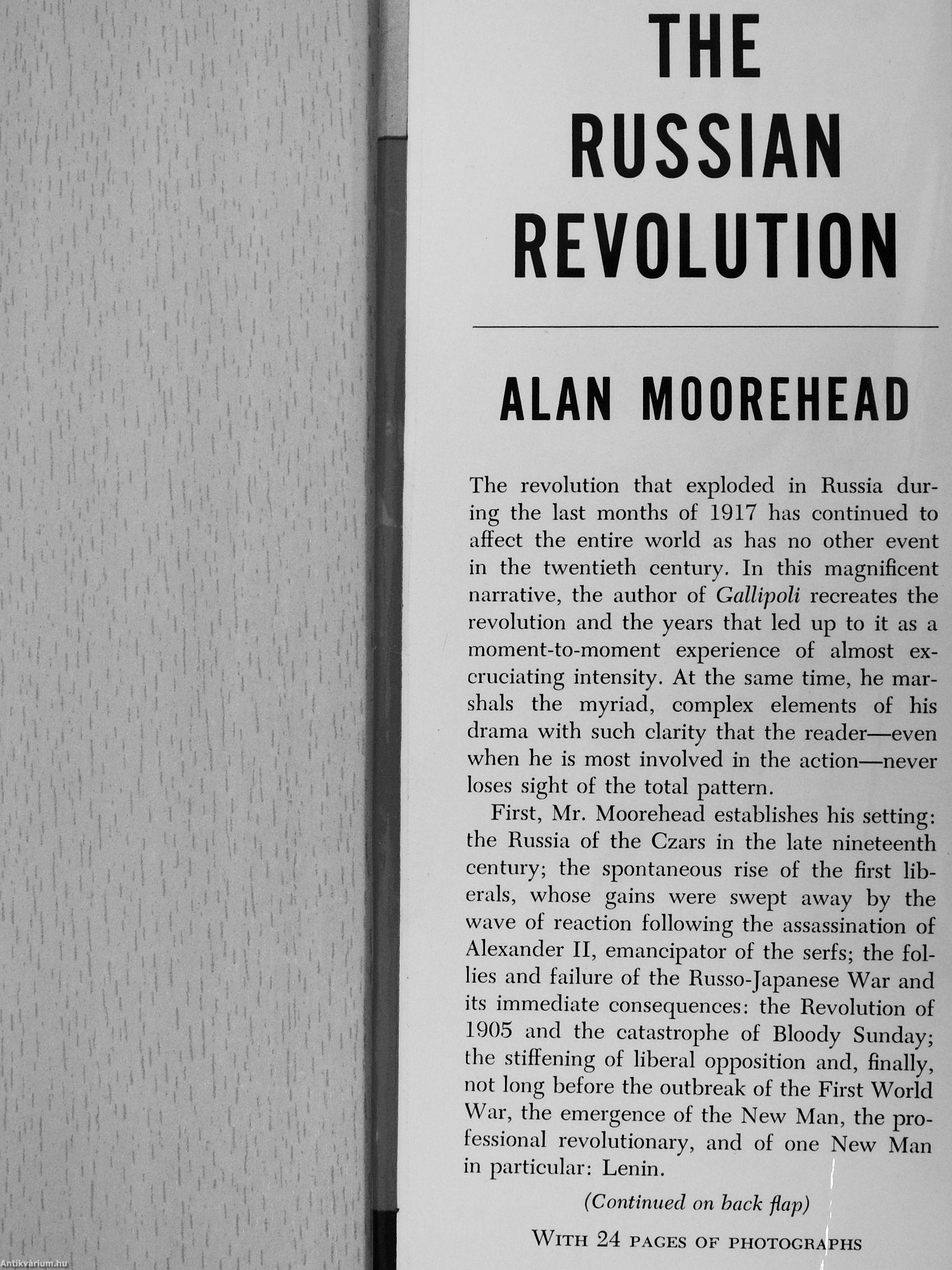 Simultaneously, Mr. Moorehead unfolds the appalling sequence of events inside Russia: the Czar's growing absolutism, reflecting Rasputin's ascendancy over the unhappy Czarina, the open demands for reform on the part of many parliamentary leaders, the ferment of underground, and largely incoherent, political activities, involving rival revolutionary groups with opposing philosophies and theories of procedure; the hideous defeats along the German front; the spectacle of an entire society reeling on the verge of dissolution; Ra.sputin's murder and, finally, the bloodless revolution of March, 1917, the Czar's abdication and the first con-fu.sed but hope-filled weeks that followed, while the Provisional Government struggled to bring order out of chaos.