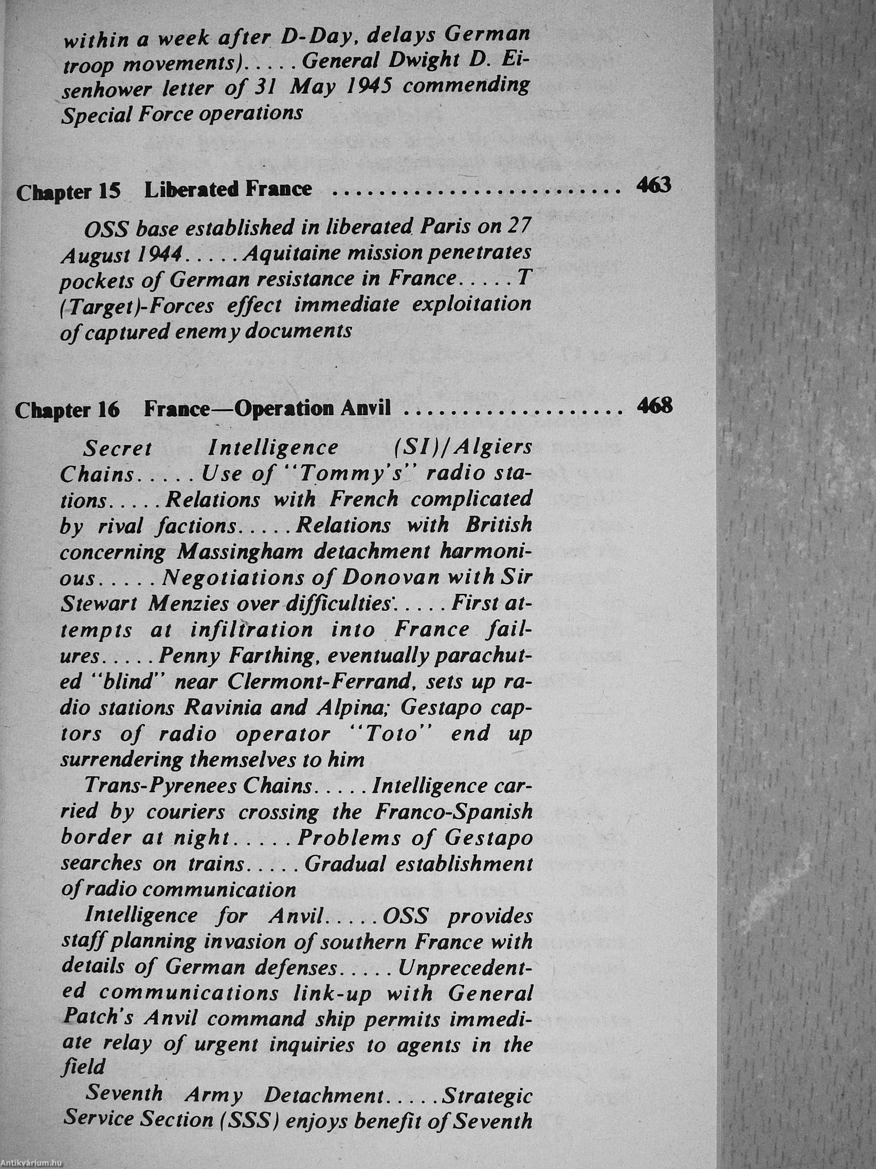 Case histories of sabotage behind-the--lines guerilla warfare heroes who defied Nazi torture to the death how D-Day was secured the brilliant triumphs of O.S.S.'s clandestine radio communications counterintelligence secrets and the origins of the C.I.A now revealed.