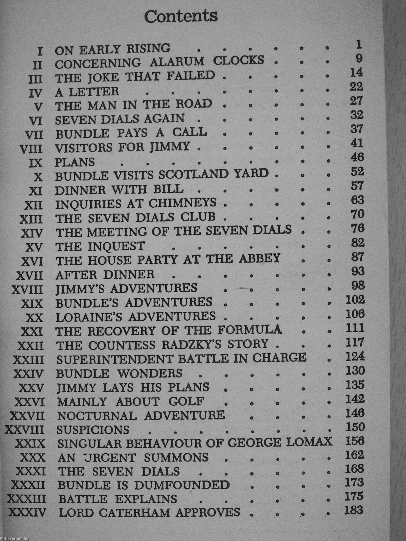 Sir Oswald and Lady Coote had rented Chimneys, an imposing old country estate,for the season. The lease didn't include murder, yet in a weekend two men were found dead on the magnificent grounds, A missing alarm clock, a stolen document, and an unfinished love letter provide the clues to The Seven Dials Mystery.******^ A fiendishly ingenious puzzler Can you solve it?