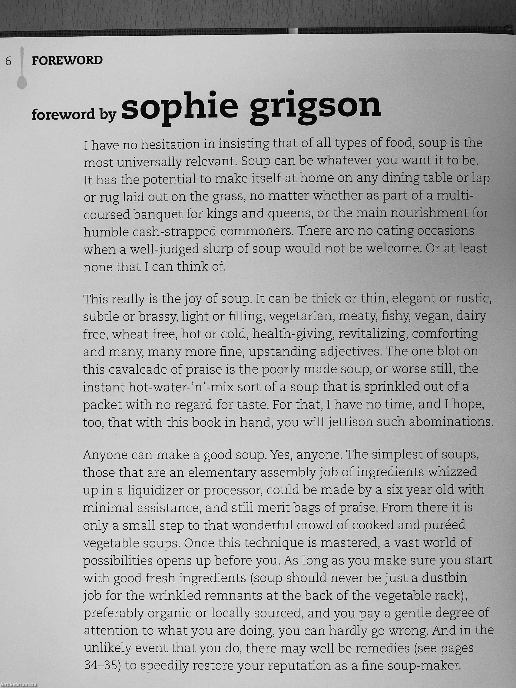 This is a soup book for our times. For vegetable-growers faced with gluts of produce, for market shoppers with a keen eye for local in-season vegetables at knock-down prices, for savvy cooks wanting to use up leftovers, and for foragers bringing home food for free.