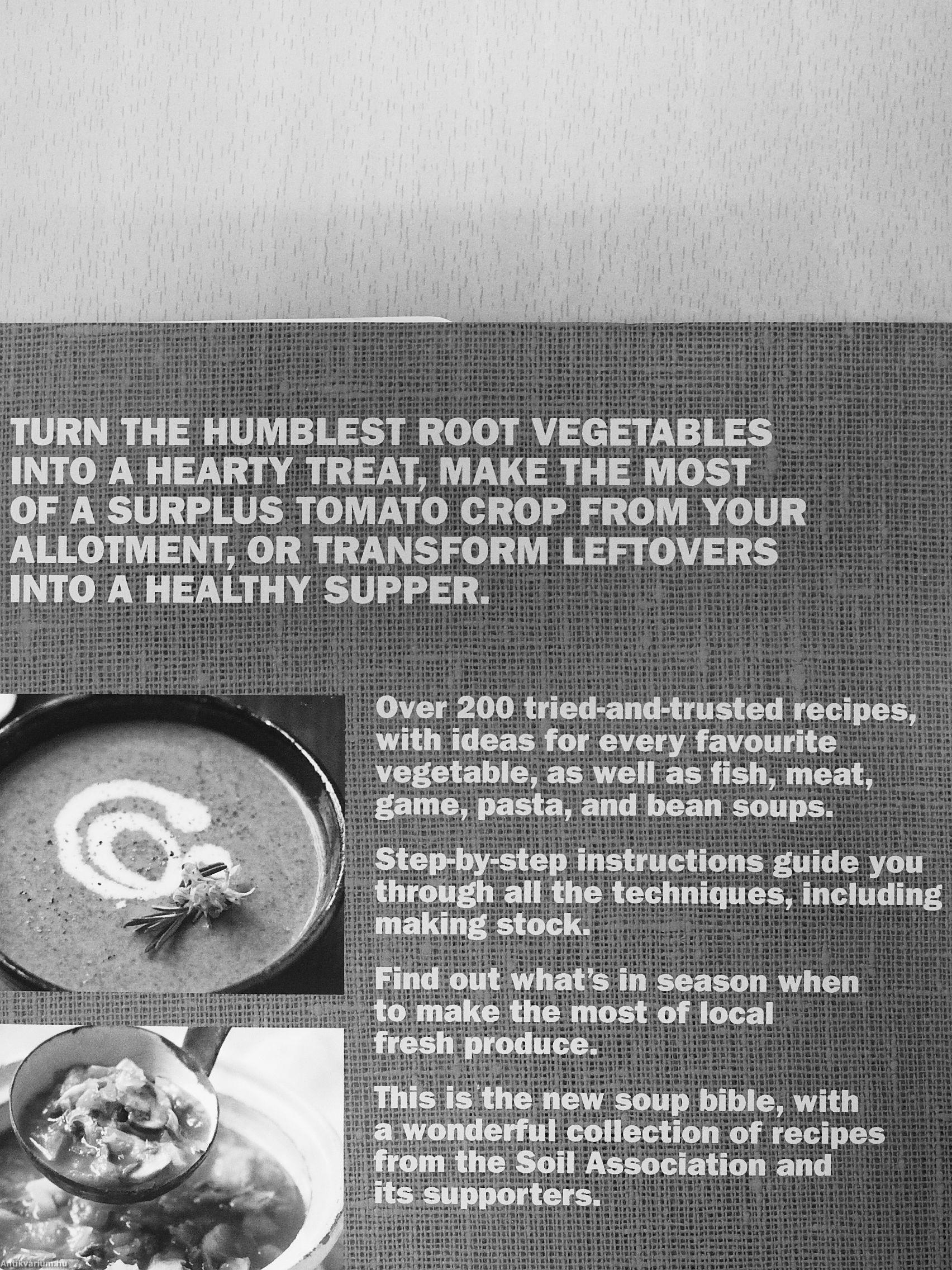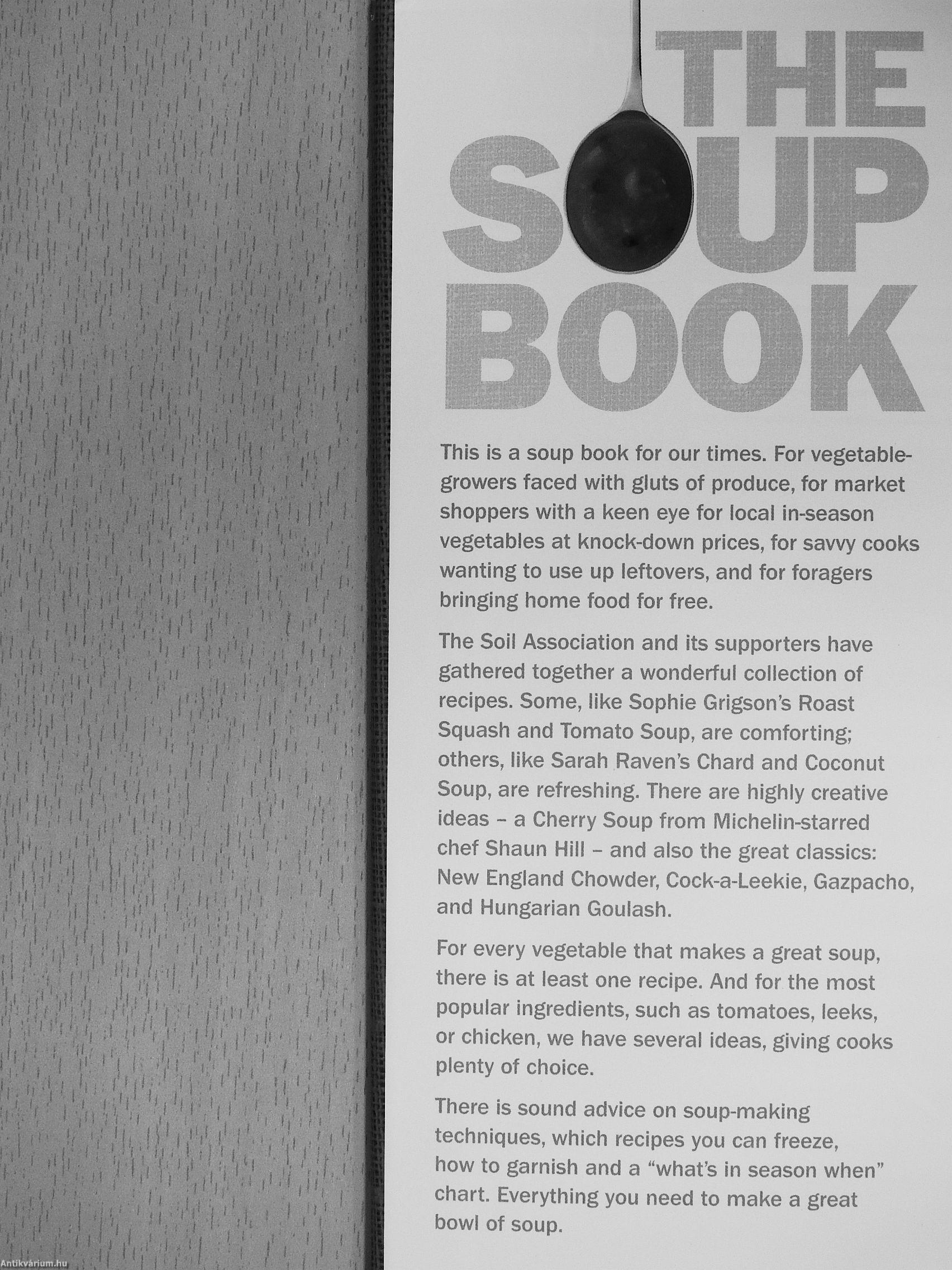 The Soil Association and its supporters have gathered together a wonderful collection of recipes. Some, like Sophie Grigson's Roast Squash and Tomato Soup, are comforting; others, like Sarah Raven's Chard and Coconut Soup, are refreshing. There are highly creative ideas - a Cherry Soup from Michelin-starred chef Shaun Hill - and also the great classics: New England Chowder, Cock-a-Leekie, Gazpacho, and Hungarian Goulash.