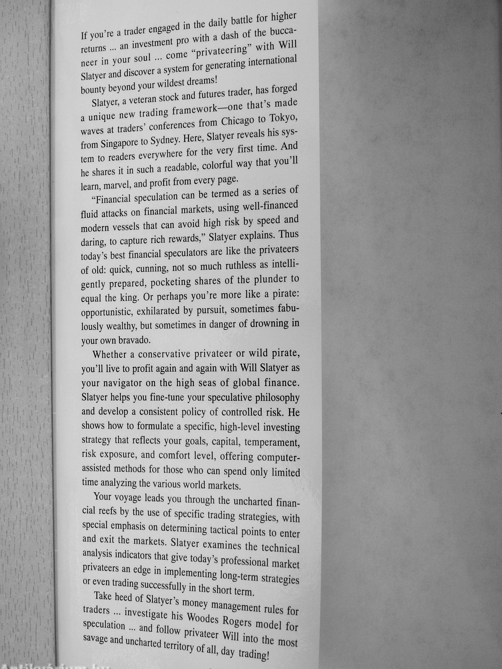 If you're a trader engaged in the daily battle for higher returns an investment pro with a dash of the buccaneer in your soul come "privateering" with Will Slatyer and discover a system for generating international bounty beyond your wildest dreams!