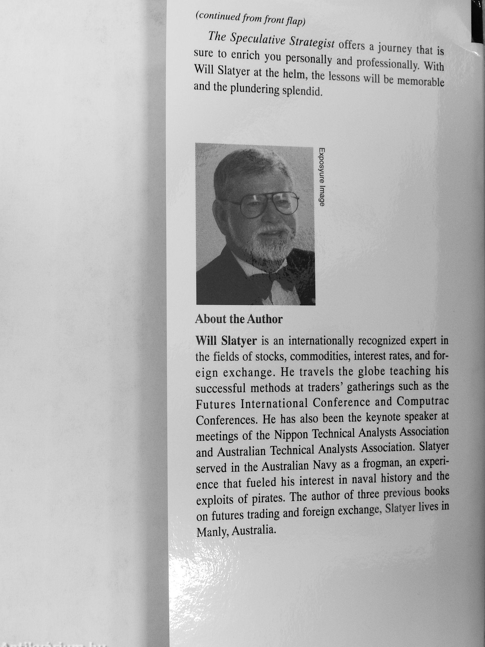 Will Slatyer is an internationally recognized expert in the fields of stocks, commodities, interest rates, and foreign exchange. He travels the globe teaching his successful methods at traders' gatherings such as the Futures International Conference and Computrac Conferences. He has also been the keynote speaker at meetings of the Nippon Technical Analysts Association and Australian Technical Analysts Association. Slatyer served in the Australian Navy as a frogman, an experience that fueled his interest in naval history and the exploits of pirates. The author of three previous books on futures trading and foreign exchange, Slatyer lives in Manly, Australia.