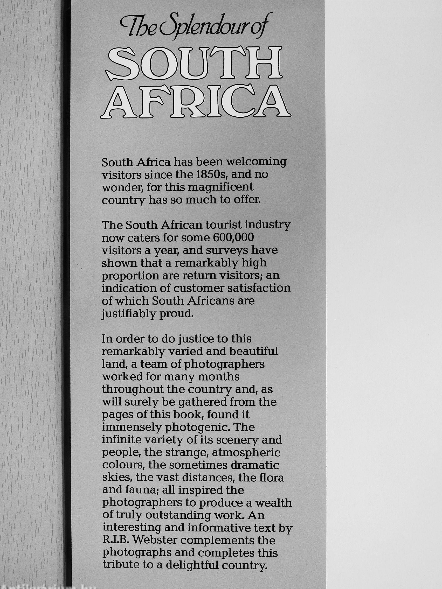 In order to do justice to this remarkably varied and beautiful land, a team of photographers worked for many months throughout the country and, as will surely be gathered from the pages of this book, found it trmnensely photogenic. The infinite variety of its scenery and people, the strange, atmospheric coloiirs, the sometimes dramatic skies, the vast distances, the flora and fauna; aU inspired the photographers to produce a wealth of truly outstanding work. An interesting and informative text by R.I.B. Webster complements the photographs and completes this tribute to a delightful country.