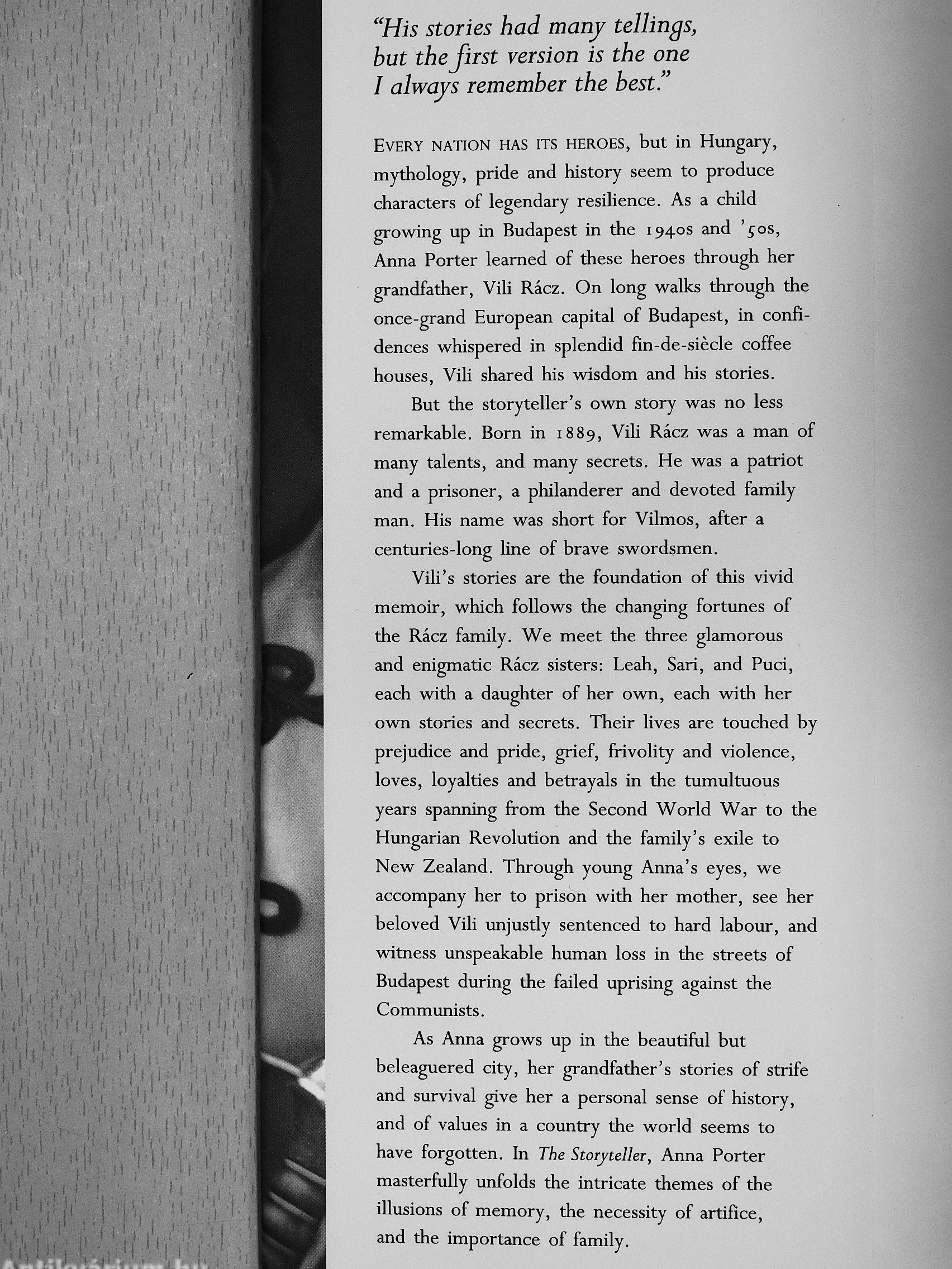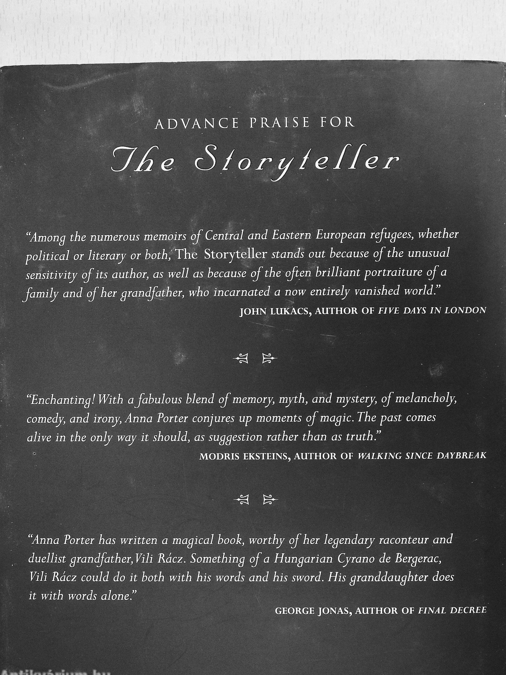 "Anna Porter has written a magical book, worthy of her legendary raconteur and duellist grandfather. Vili Rácz. Something of a Hungarian Cyrano de Bergerac, Vili Rácz could do it both with his words and his sword. His granddaughter does it with words alone."
