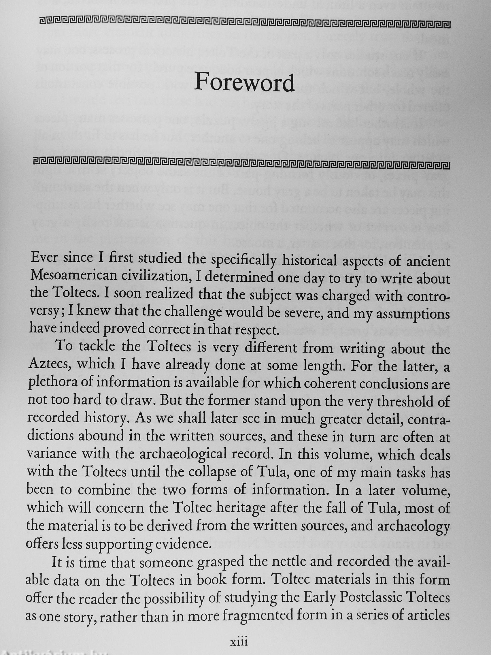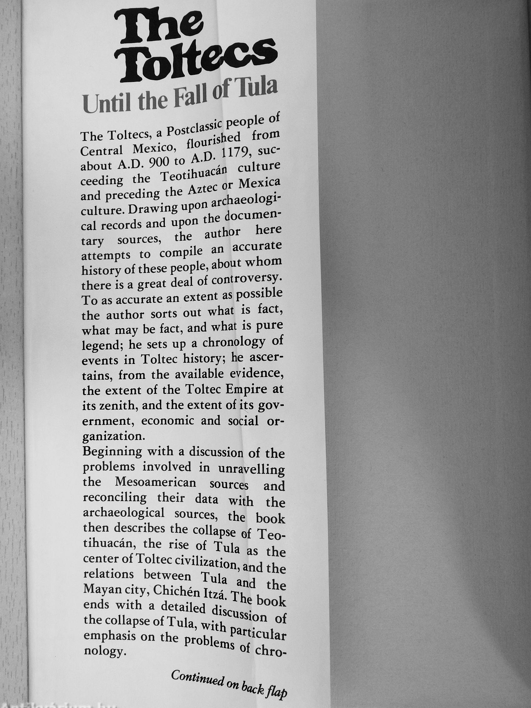 The history of the Toltecs from the fall of Tula to the rise of Tenochtit-lán will be the subject of a future volume.