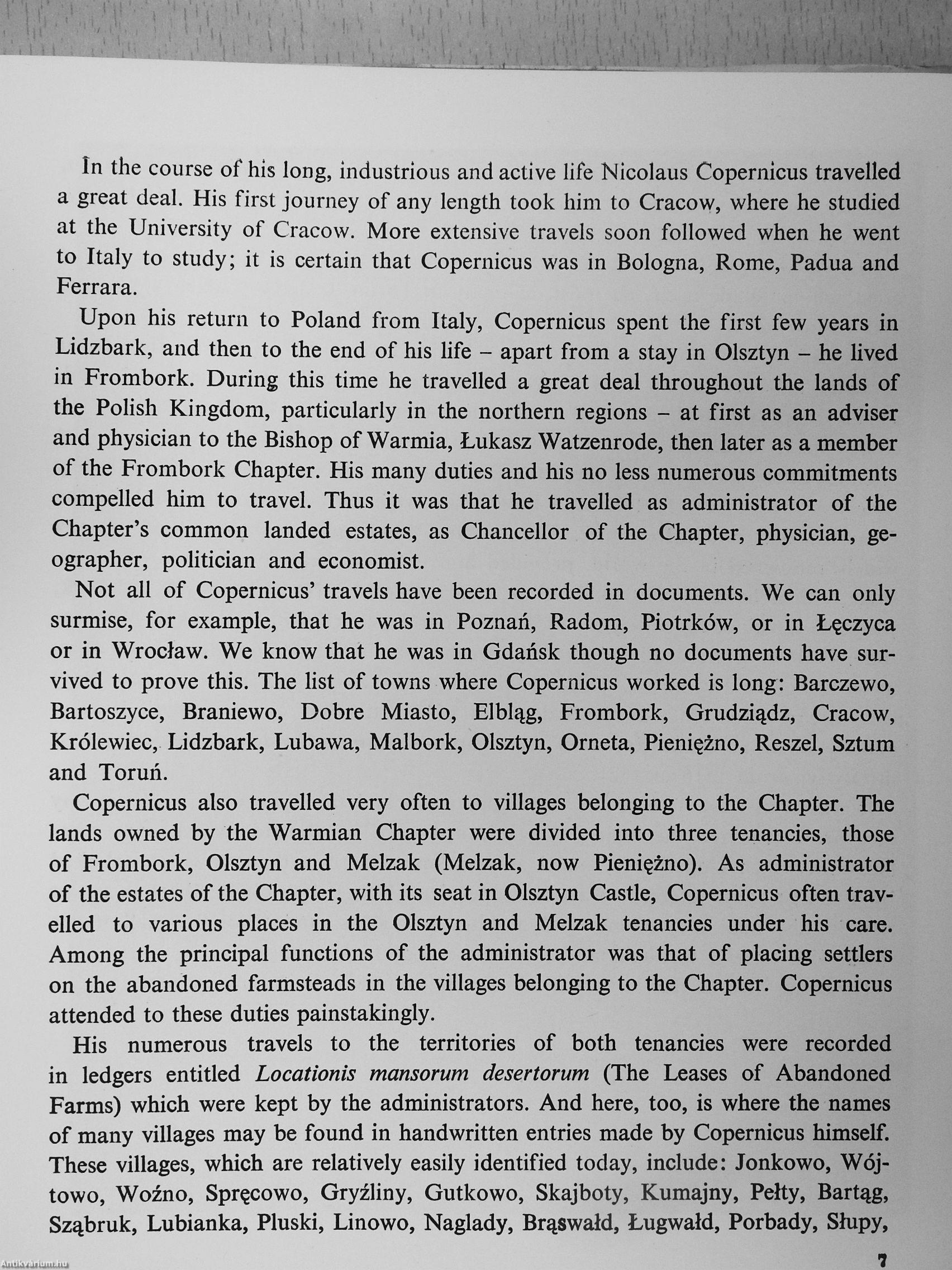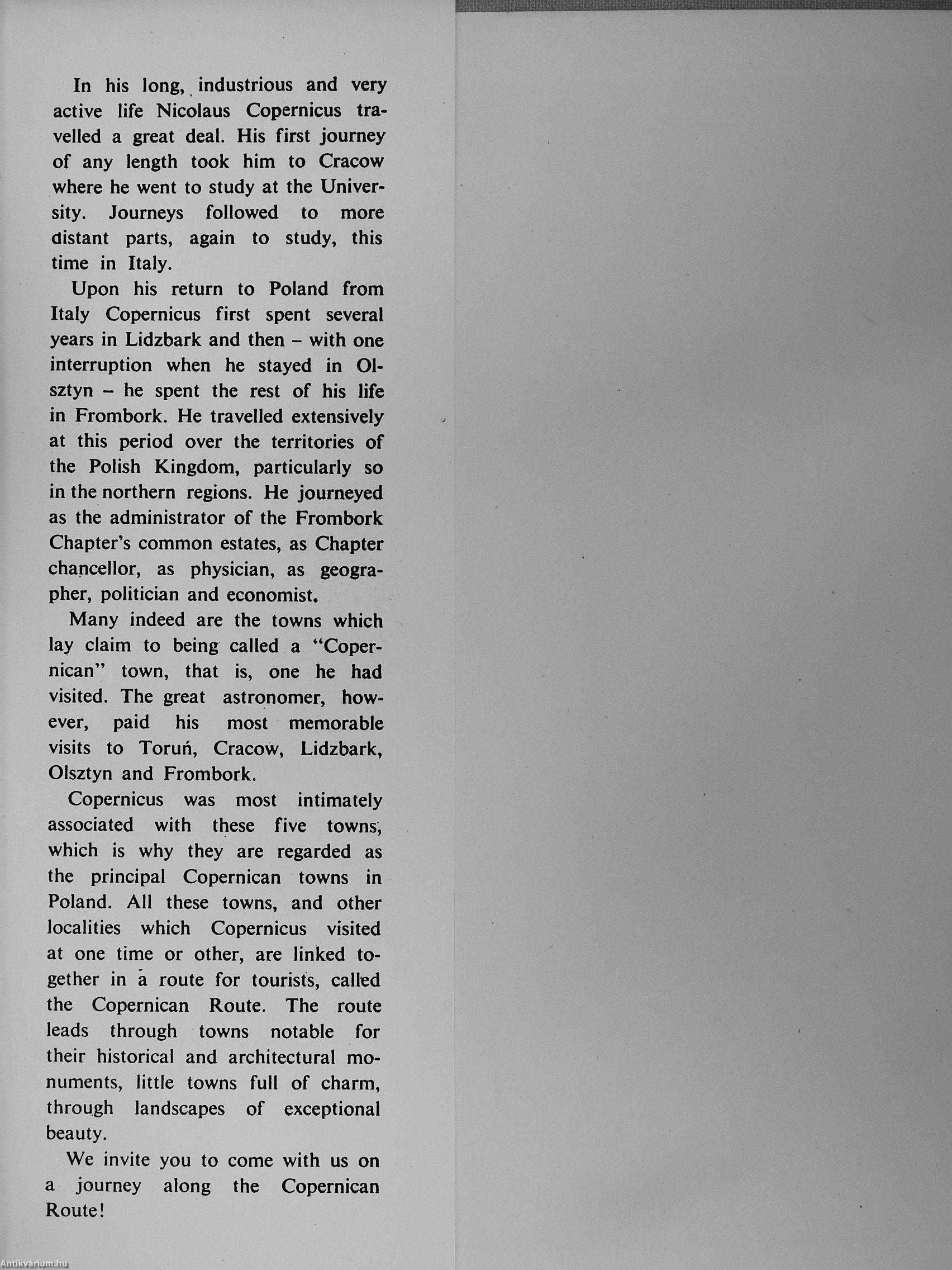 Many indeed are the towns which lay claim to being called a "Coper-nican" town, that is, one he had visited. The great astronomer, however, paid his most memorable visits to Toruii, Cracow, Lidzbark, Olsztyn and Frombork.