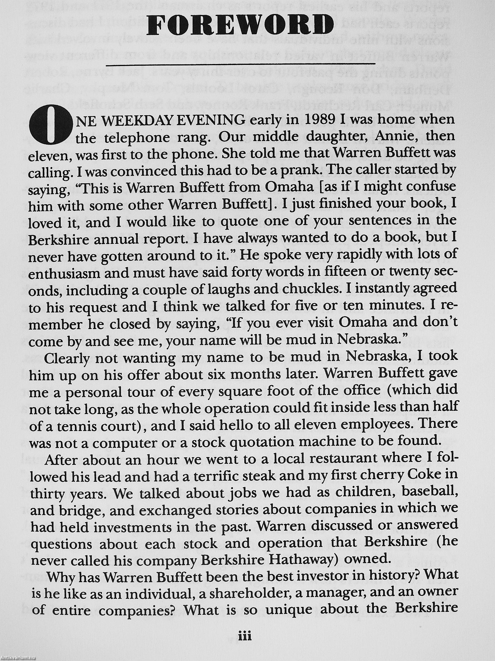"Warren Buffett is surely the Greatest Investor of this century—not so much because he built a great fortane within a free market as because he has shared his important thinking with us and has openly demonstrated the sagacity and courage so vital to success. Berkshire Hathaway has been my largest, longest investment. Warren has been my best teacher." —Charles D. EUis Managing Partoer Greenwich Associates