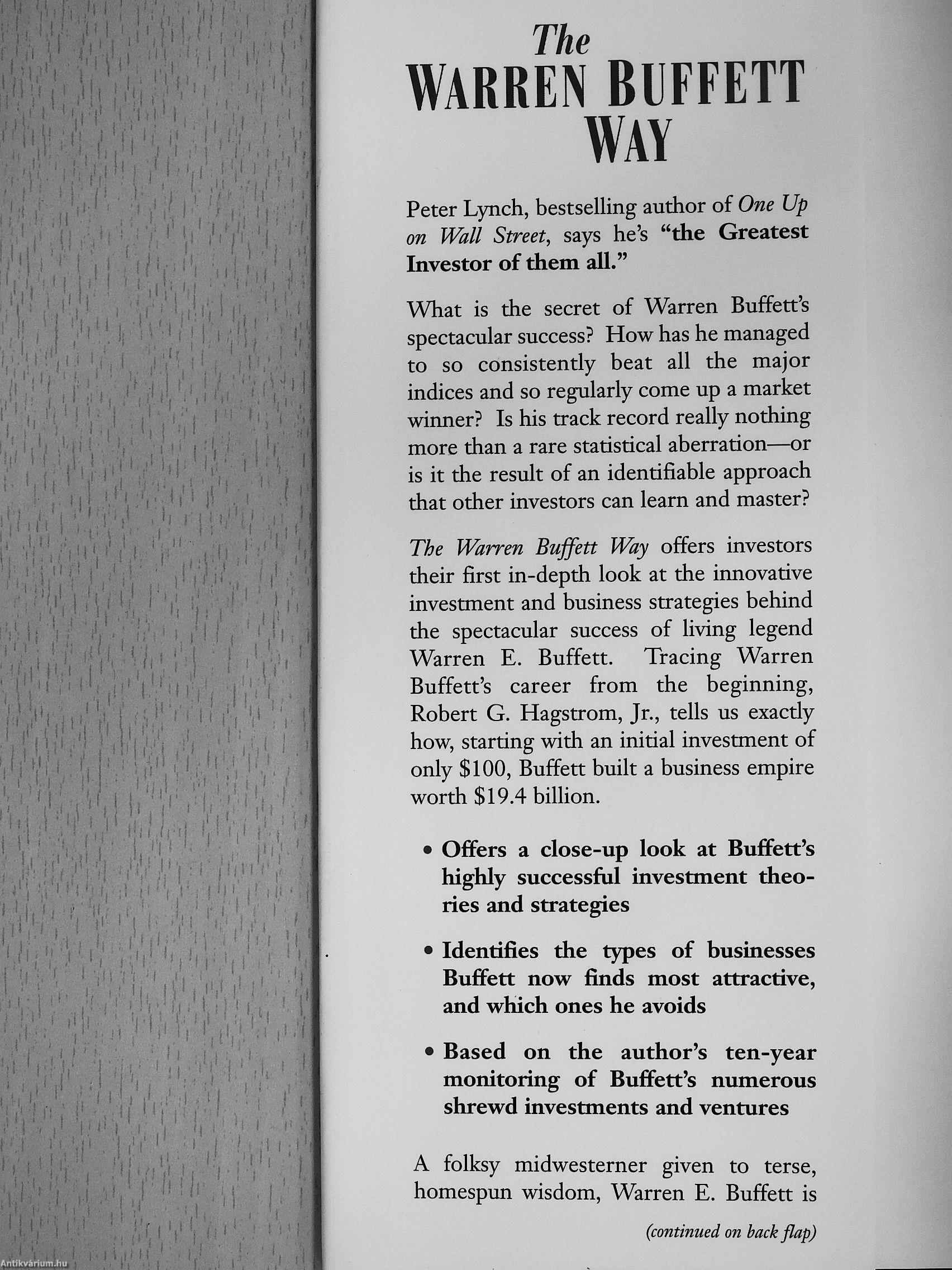The Warren Buffett Way offers investors their first in-depth look at the iimovative investment and business strategies behind the spectacular success of living legend Warren E. Buffett. Tracing Warren Buffett's career from the beginning, Robert G. Hagstrom, Jr., tells us exactly... Tovább